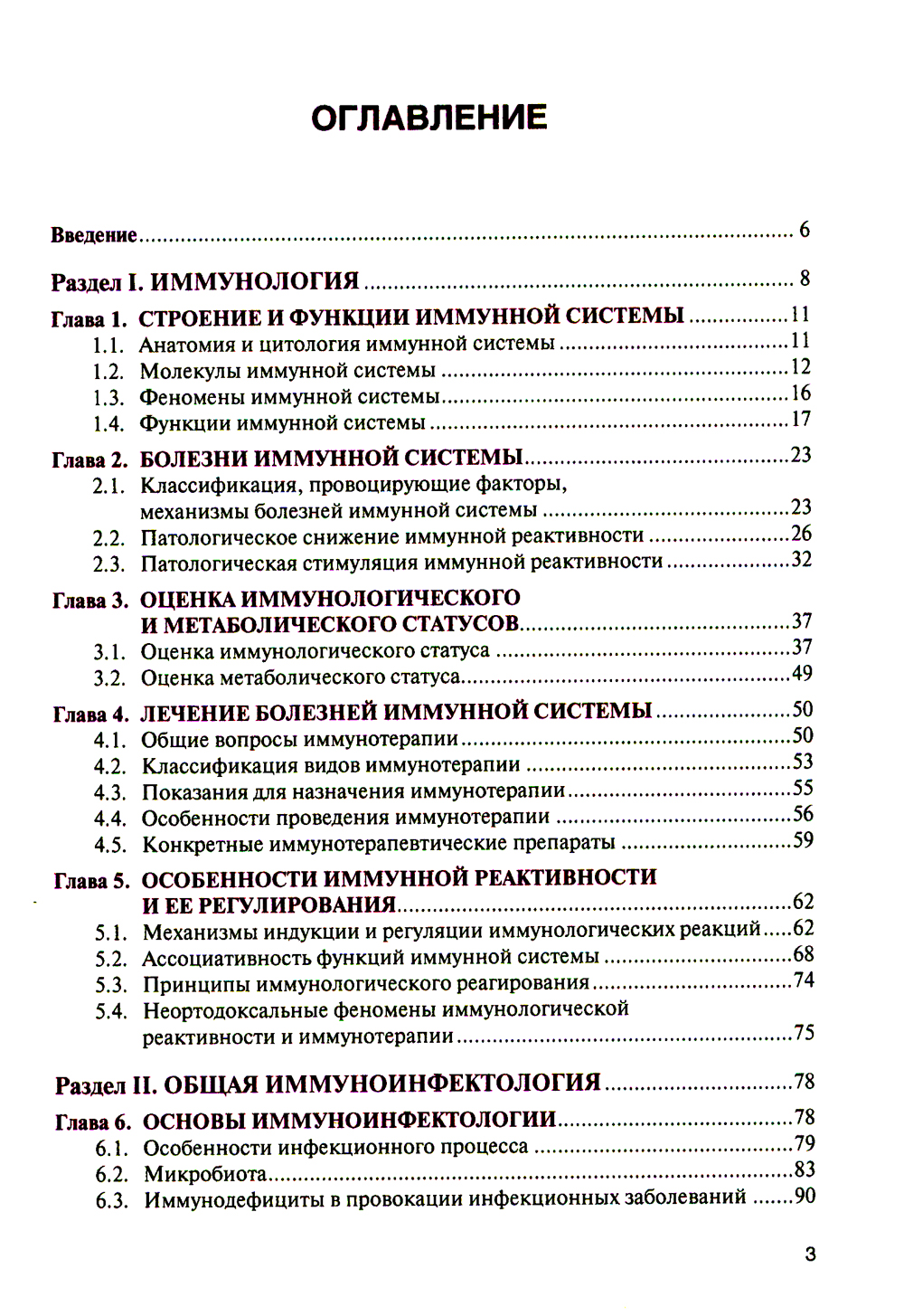 Объединяет три раздела. Раздел I «Иммунология» состоит из 5 глав - строение, функция, болезни, лечение, регуляция, оценка иммунной системы. Раздел II «Общая иммуноинфектология» слагается из 6-11-й глав - основы иммуноинфектологии, особенности течения, диагностики, группы риска, иммунопрофилактика и иммунотерапия инфекций. Раздел III «Частная инфектология» объединяет 12-36-ю главы, посвященные заболеваниям, вызванным бактериозами, вирусами, простейшими, гельминтами. Также включает тестовый контроль знаний и ситуационные задачи по основным разделам учебника. Соответствует ФГОС ВО последнего поколения.| Издательство | КноРус |