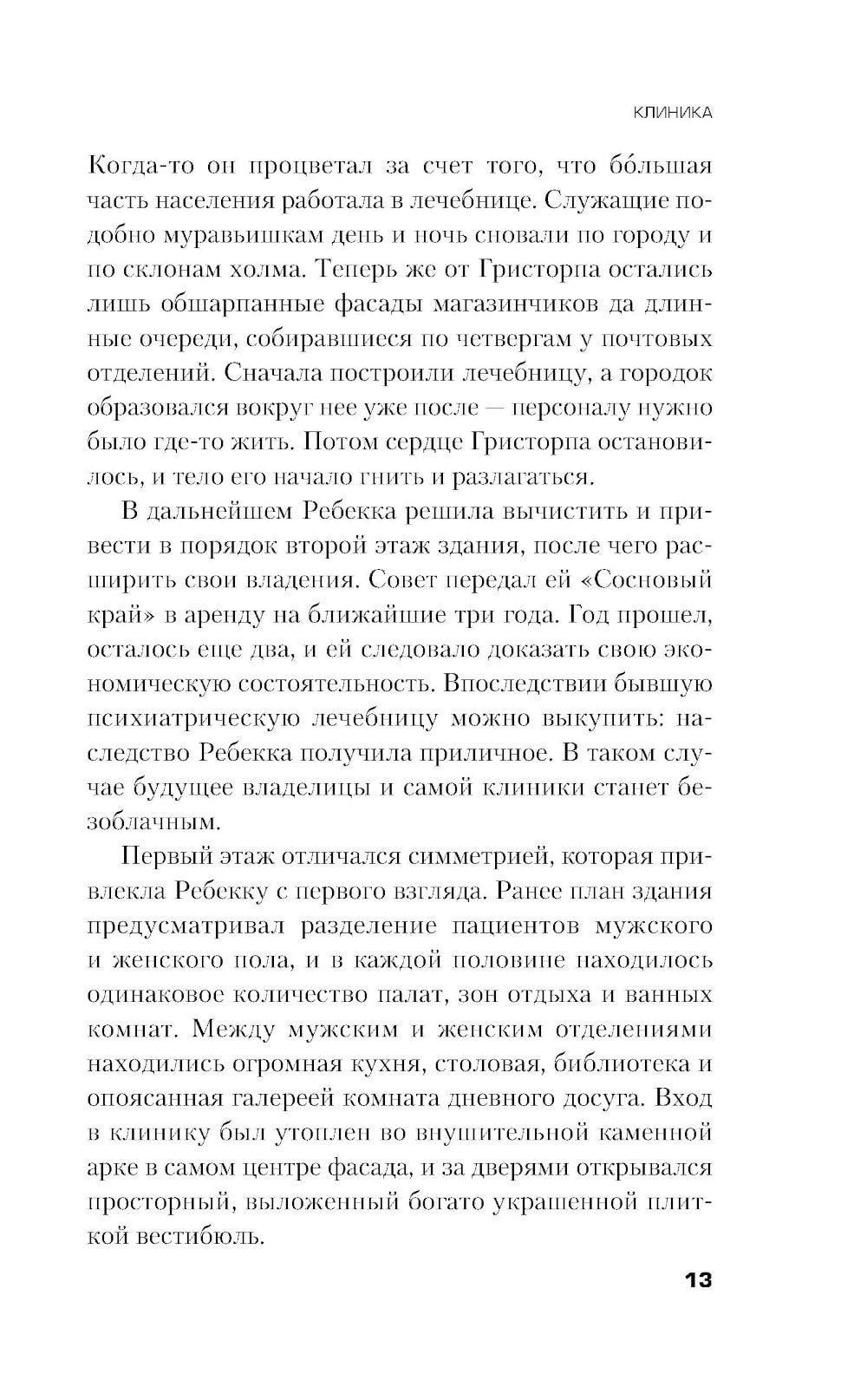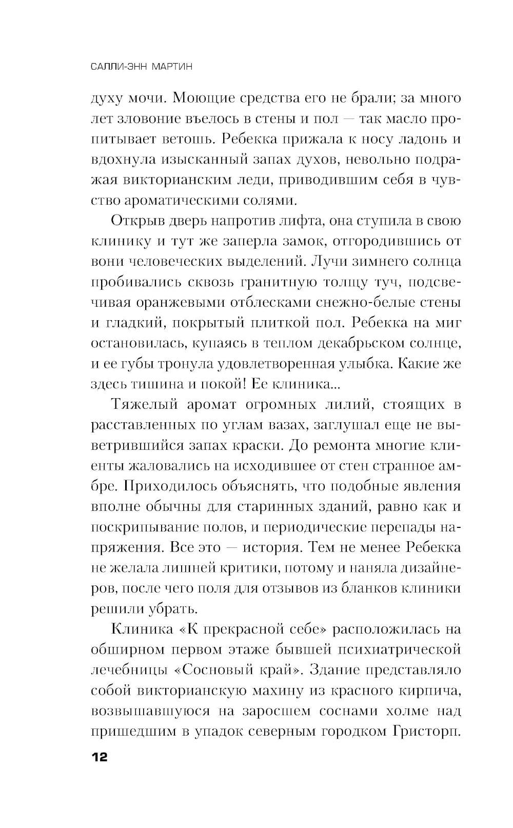 Психиатрическая лечебница «Сосновый край» - огромный особняк посреди болот. Целый век здесь калечили людям психику, якобы борясь с их безумием. Все закончилось неистовым бунтом пациентов и убийством смотрительницы. Теперь в здании разместилась клиника «К прекрасной себе» - последняя надежда для женщин, отчаявшихся похудеть. Дженни - одна из жертв «Соснового края». Много лет она провела в стенах этого садистского заведения и до сих пор не может прийти в себя. Но когда ее арендодатель решает присвоить этот особняк, именно Дженни предлагается проникнуть туда и собрать компромат на хозяйку нового заведения. Девушка не может отказаться - слишком соблазнительна сумма вознаграждения для той, кто едва сводит концы с концами. Бывшая узница психбольницы с содроганием возвращается в место своих мучений. Но находит совсем не то, за чем ее послали: нынешняя клиника хранит тайну посерьезнее каких бы то ни было махинаций. Смертельную тайну…| Издательство | Эксмо |