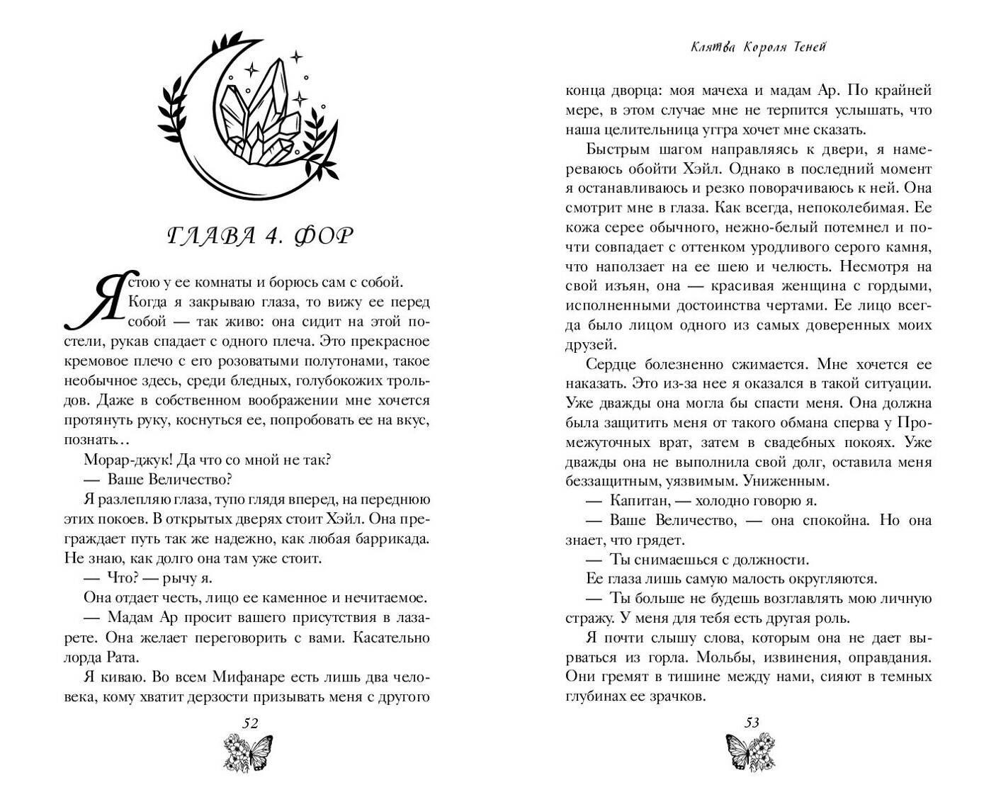 Продолжение романтической и полной загадок фэнтези-трилогии «Король Теней». Готовьтесь погрузиться в сказку о предательстве, разбитых сердцах и запретной любви. История для всех поклонников слоуберна, а также фанатов Элис Ковы и Дженнифер Арментроут. Когда обман Фэрейн раскрывают, девушка становится пленницей в Подземном королевстве, во власти новоиспеченного мужа. Она окружена врагами, а единственный шанс на выживание - убедить Фора отослать ее домой. Но отказ от союза принесет погибель народу Фэрейн. Король Теней не хочет иметь ничего общего со смертной, на которой женился, сам о том не подозревая. Раньше он думал, что мог бы ее полюбить, но предательство девушки все изменило. Однако, когда обстоятельства вынуждают их провести больше времени вместе, кровь Фора закипает от чувств, которые ему не хочется признавать. Могут ли два потерянных сердца найти друг в друге исцеление и надежду? Или же их любовь обречена? Вас ждет уникальная история с невиданными ранее расами, мифическими существами, необычным проработанным миром и искрящейся химией между персонажами! Повествование от лица обоих героев позволит лучше погрузиться в историю.