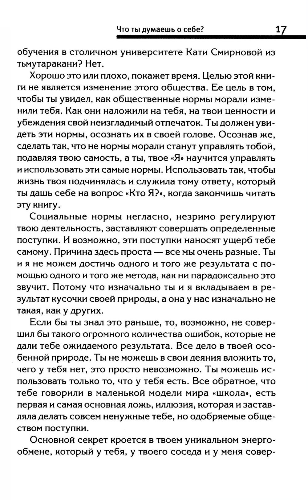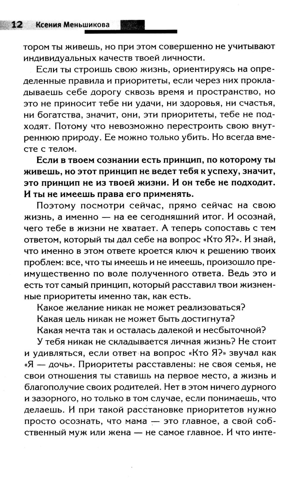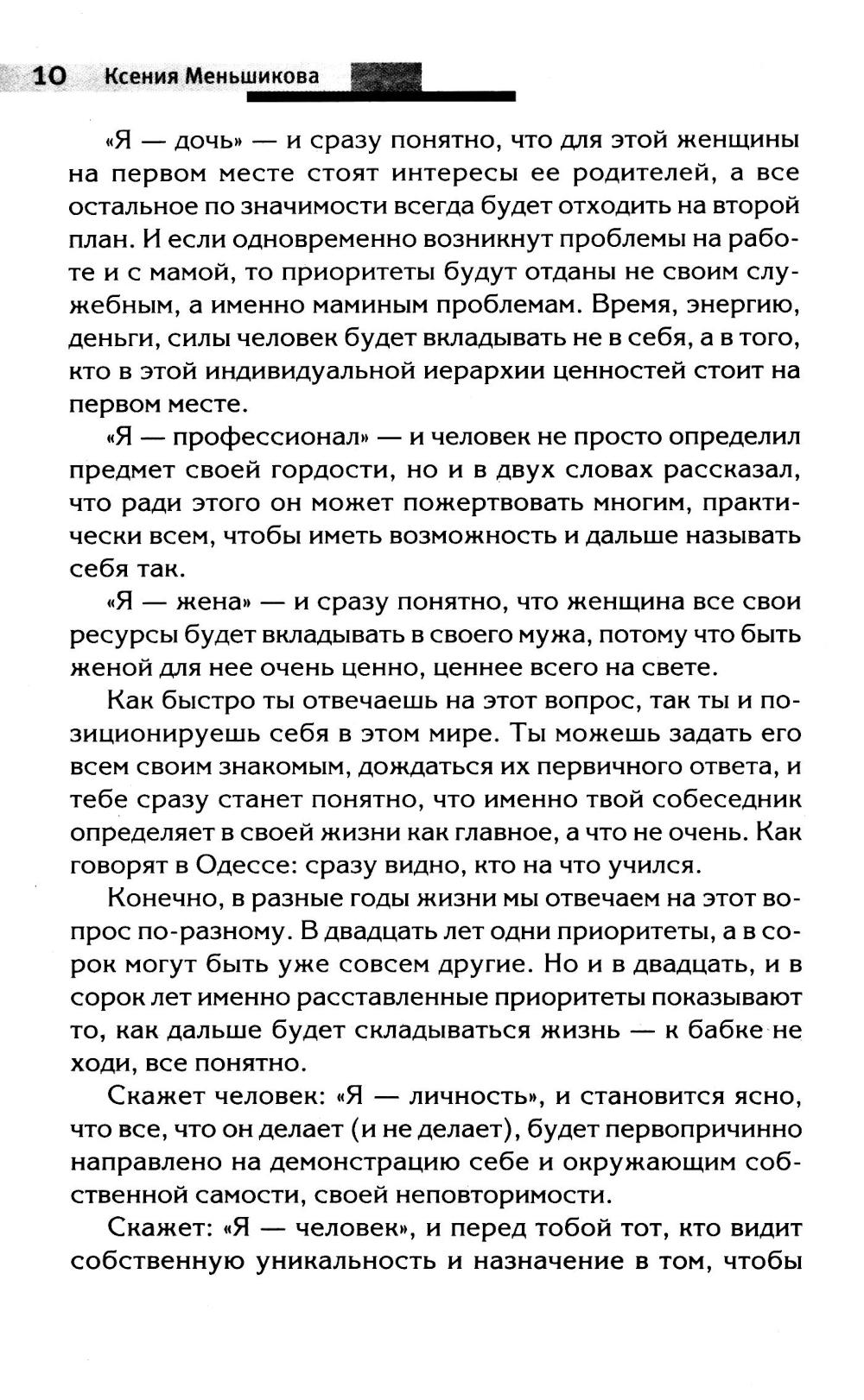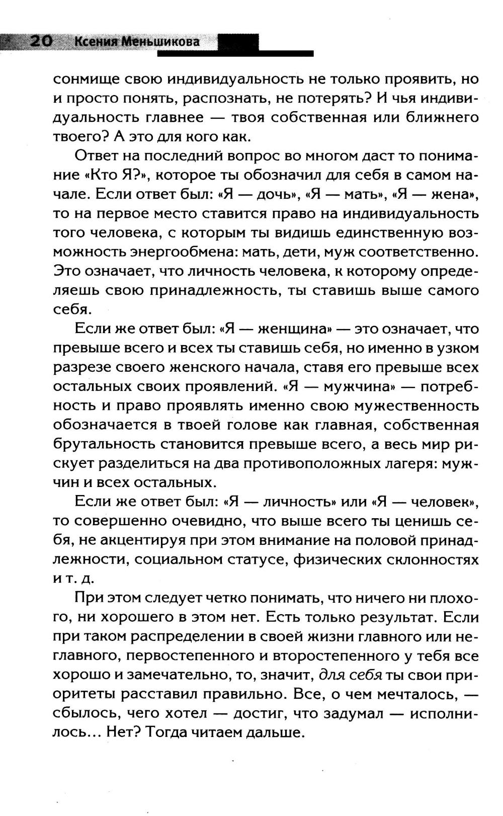 Рано или поздно каждый человек задает себе этот простой, но в то же время очень сложный вопрос. Кто Я? Эта книга поможет тебе разобраться в самом себе, в других людях и в ваших сложных, запутанных отношениях. Ксения Меньшикова покажет, как найти ответ на основной вопрос и больше никогда-никогда не проживать чужую жизнь и не повторять чужую судьбу. Ведь твоя уникальная ниша, твой жизненный путь принадлежит только тебе...| Издательство | Центрполиграф |