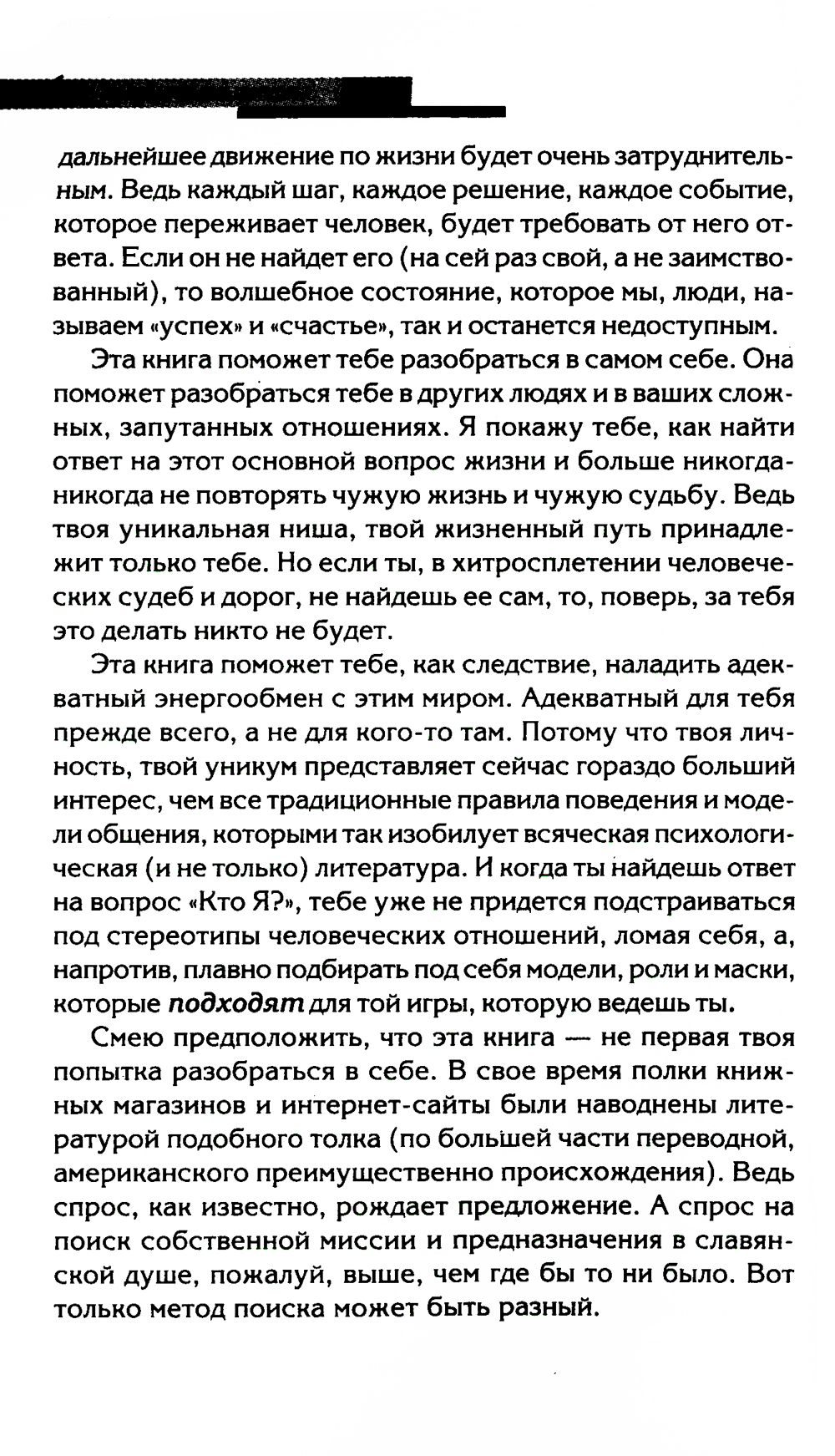 Рано или поздно каждый человек задает себе этот простой, но в то же время очень сложный вопрос. Кто Я? Эта книга поможет тебе разобраться в самом себе, в других людях и в ваших сложных, запутанных отношениях. Ксения Меньшикова покажет, как найти ответ на основной вопрос и больше никогда-никогда не проживать чужую жизнь и не повторять чужую судьбу. Ведь твоя уникальная ниша, твой жизненный путь принадлежит только тебе...| Издательство | Центрполиграф |