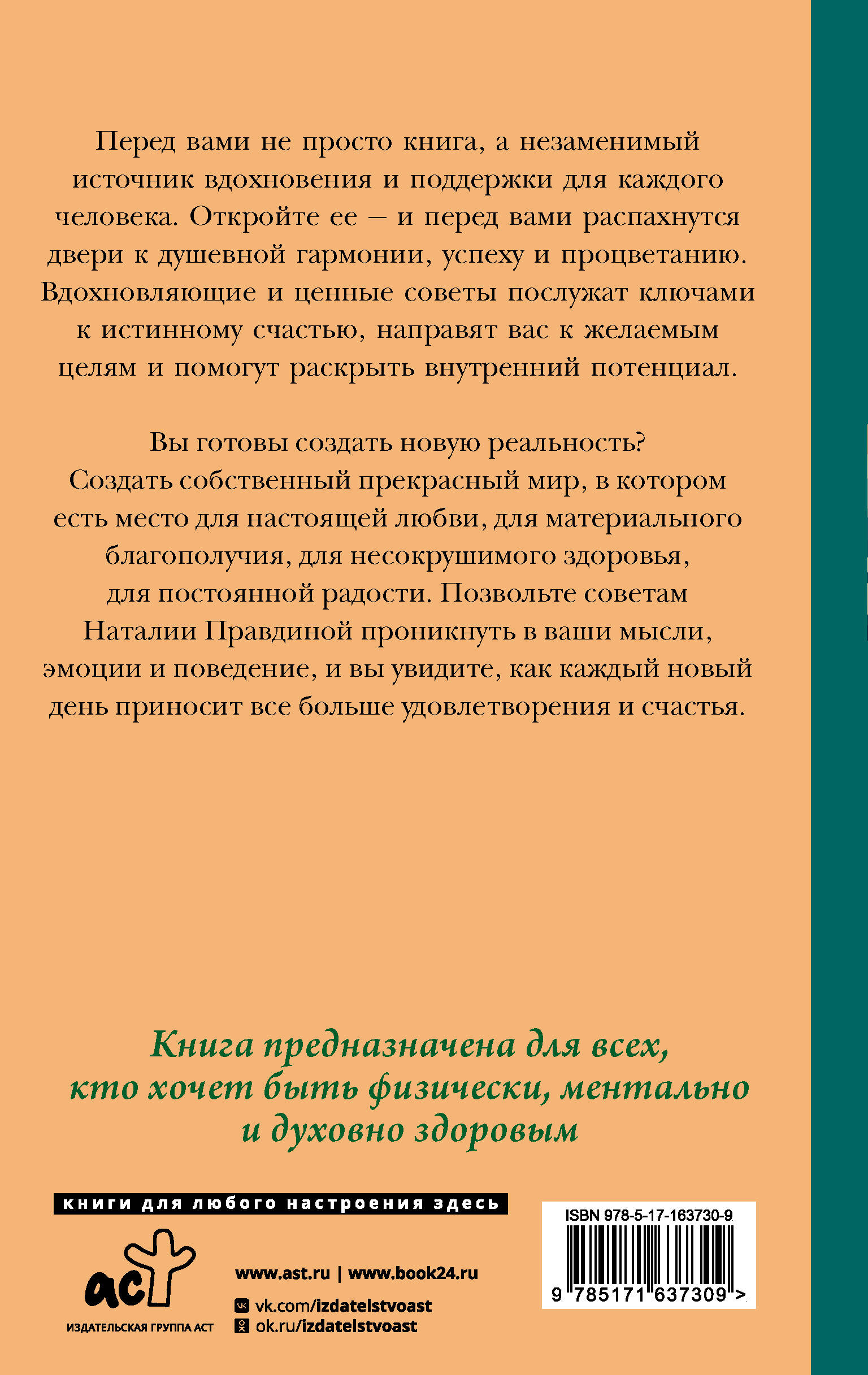 Как стать счастливой? Как улучшать себя и свою жизнь каждый день? Как научиться чувствовать радость жизни? Как привлечь здоровье, успех и богатство? Наталия Правдина - дипломированный специалист по фэн-шуй, автор множества книг по по позитивному мышлению, творческой визуализации, искусству фэн-шуй, поделится простыми, но действенными советами, чтобы каждый день приближал вас к вашей мечте. На страницах книги «Ключи для счастья» вы найдете советы, аффирмации и медитации, которые научат вас принимать подарки судьбы и благодарить за них, благословлять ваши начинания, замечать подсказки вселенной, и двигаться в сторону исполнения ваших заветных желаний. Также в книге вы найдете топ-10 идей для повышения настроения, топ-10 секретов богатства, и топ-10 способов чувствовать себя спокойной и умиротворенной в любой ситуации. А советы по фэн-шую помогут преобразить ваш дом, чтобы пространство давало силы и вдохновение. Моделируйте вашу новую гармоничную реальность каждый день и следуйте за мечтой с книгой Натальи Правдиной «Ключи для счастья»!| Издательство | Издательство "АСТ" |