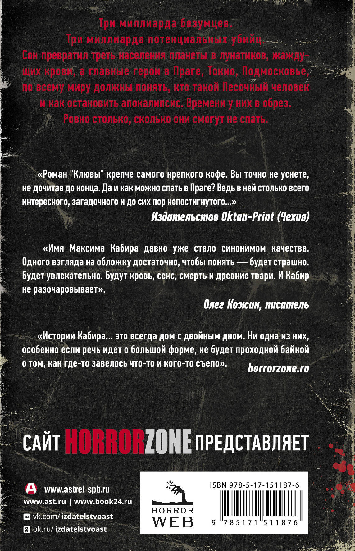 Три миллиарда безумцев. Три миллиарда потенциальных убийц. Сон превратил треть населения планеты в лунатиков, жаждущих крови, а главные герои в Праге, Токио, Подмосковье, по всему миру должны понять, кто такой Песочный человек и как остановить апокалипсис. Времени у них в обрез. Ровно столько, сколько они смогут не спать.| Издательство | ИЗДАТЕЛЬСТВО "АСТ" |