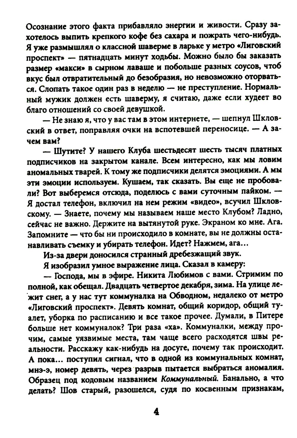 В зимнем Петербурге неспокойно - кто-то балуется с разрывами, то и дело подбрасывая в реальный мир безумные фантазии, ожившие человеческие страхи и штампы мышления. Бытие рвётся по швам, а латать его предстоит «Клубу любителей хоррора» - тайной организации швей, не позволяющей существам с изнанки буйствовать снаружи и высасывать жизнь из простых горожан. И пристально следящей, чтобы никто, не дай бог, не провалился в изнанку.| Издательство | Крафтовая литература |