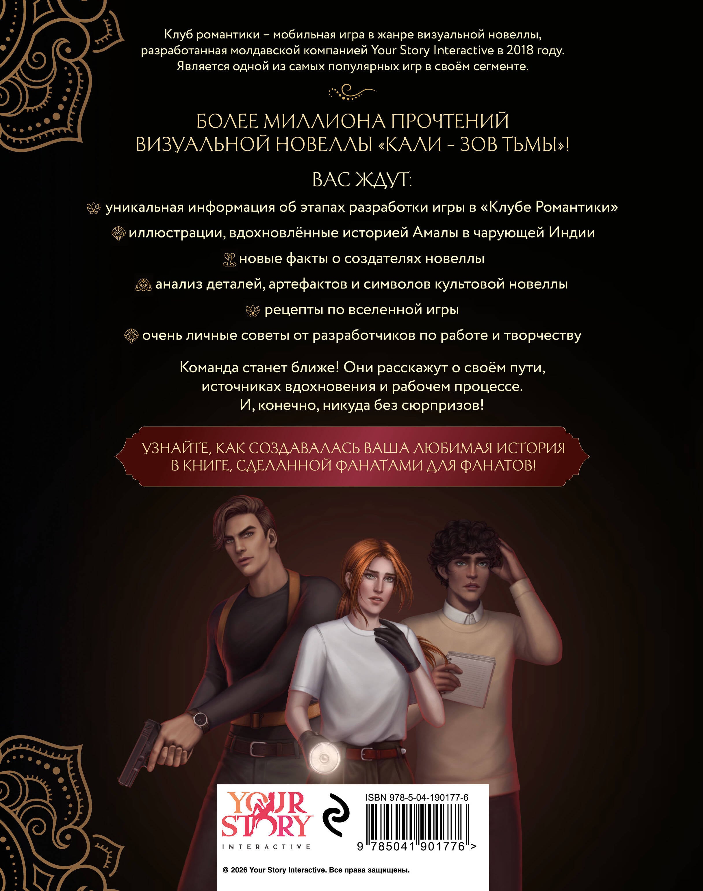 Артбук по культовой истории «Кали - Зов Тьмы» от «Клуба Романтики». Внутри вы найдёте эксклюзивные факты о создании истории, интервью с командой «Кали - Зов Тьмы», этапы разработки и тематические арты от популярных художников. Вас ждут увлекательные исследования об Индии, разбор сюжета истории и советы для начинающих художников и писателей. Оформление издания выполнено с особым вниманием к деталям: золотая фольга на обложке, мелованная матовая бумага и цветные иллюстрации. Это издание станет отличным подарком для всех, кто любит «Клуб Романтики»! С ним вы сможете погрузиться в мир этой истории и черпать вдохновение в индийской эстетике!| Издательство | ООО "Издательство "Эксмо" |