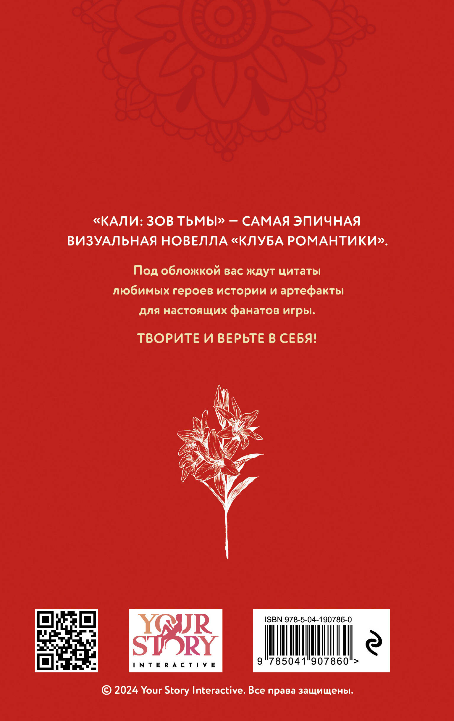 Уникальное издание по самой эпичной визуальной новелле «Клуба Романтики» «Кали: Зов тьмы». Издание для скетчей, записей и вдохновения для художников и фанатов «Клуба Романтики». «Кали: Зов тьмы» - мистическая новелла в жанре фэнтезийных ужасов о девушке, которая прибывает в Индию из Англии. Ей предстоит распутать клубок таинственных событий с исчезновениями людей, божественной карой и любовью… Роскошное оформление: скетчбук в твердом переплете с обложкой от популярного иллюстратора NICK. Внутри любимые цитаты из новеллы, скетчи от сценаристки и цветные вклейки с кат-сценами - всё это на плотной офсетной бумаге. Скетчбук станет главным изданием для настоящего фаната! Этот скетчбук - отличный подарок девушке, всем фанатам «Клуба Романтики», ценителям стильных изданий и художникам, которые ищут вдохновения.| Издательство | ООО "Издательство "Эксмо" |