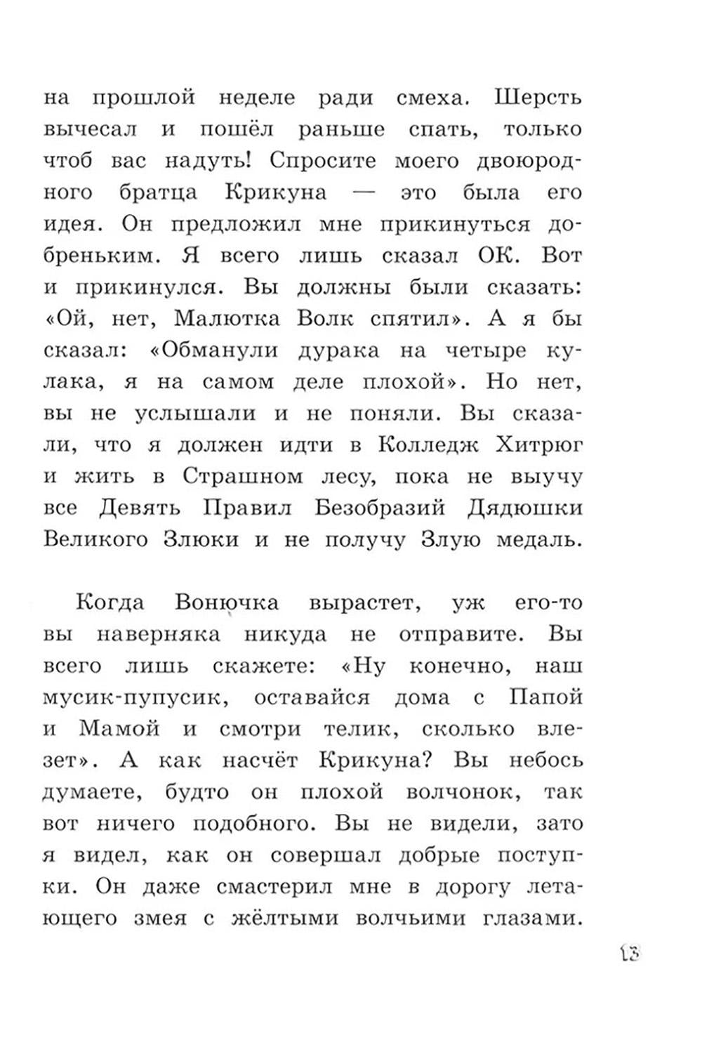 Всё, чего хотел Малютка Волк, - это остаться дома. Но нет, его посылают в Колледж Хитрюг, чтобы он наконец-то научился плохо себя вести, стал настоящим зверем и получил Злую медаль. Тогда родители смогут им гордиться! Кому понравится: младшим школьникам, озорникам, которые любят смешные детские книги про животных и уже неплохо читают сами, но ещё предпочитают, чтобы текста было поменьше, а картинок, веселья, приключений, зверей и зверят побольше. «Я читаю сам!» - вот девиз детских книжек про волчонка-непоседу, великого выдумщика, который, несомненно, станет любимым персонажем вашего ребёнка (и надолго, ведь книг про него - семь, целая серия!) Подойдёт и для мальчика, и для девочки. Книга для детей 7-10 лет.| Издательство | Изд. Лабиринт Пресс |