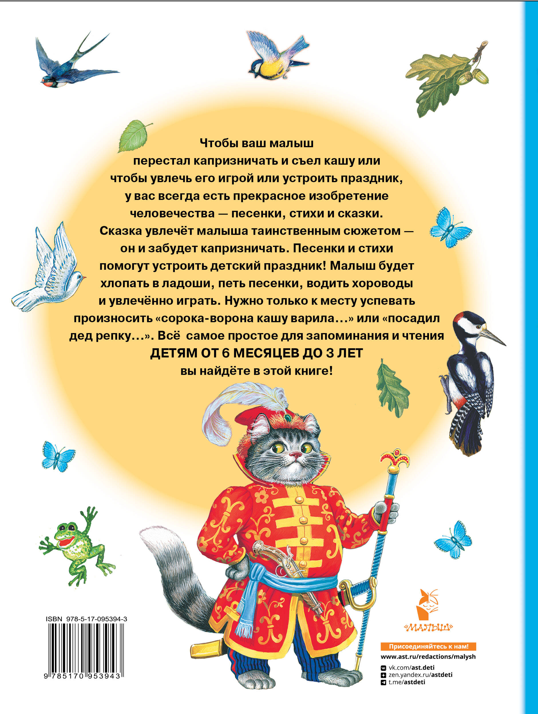 Чтобы ваш малыш перестал капризничать и съел всю кашу или чтобы увлечь его игрой или устроить праздник, у вас всегда есть прекрасное изобретение человечества - песенки, потешки, стихи и сказки. Сказка увлечёт малышей таинственным сюжетом - он и забудет капризничать. Песенки и стихи помогут устроить детский праздник! Малыш будет хлопать в ладоши, петь песенки, водить хороводы и увлечённо играть. Нужно только успевать к месту произносить "сорока-ворона кашу варила..." или "посадил дед репку". Всё самое простое для запоминания и чтения детям от 6 месяцев до 3 лет вы найдёте в нашей книге!