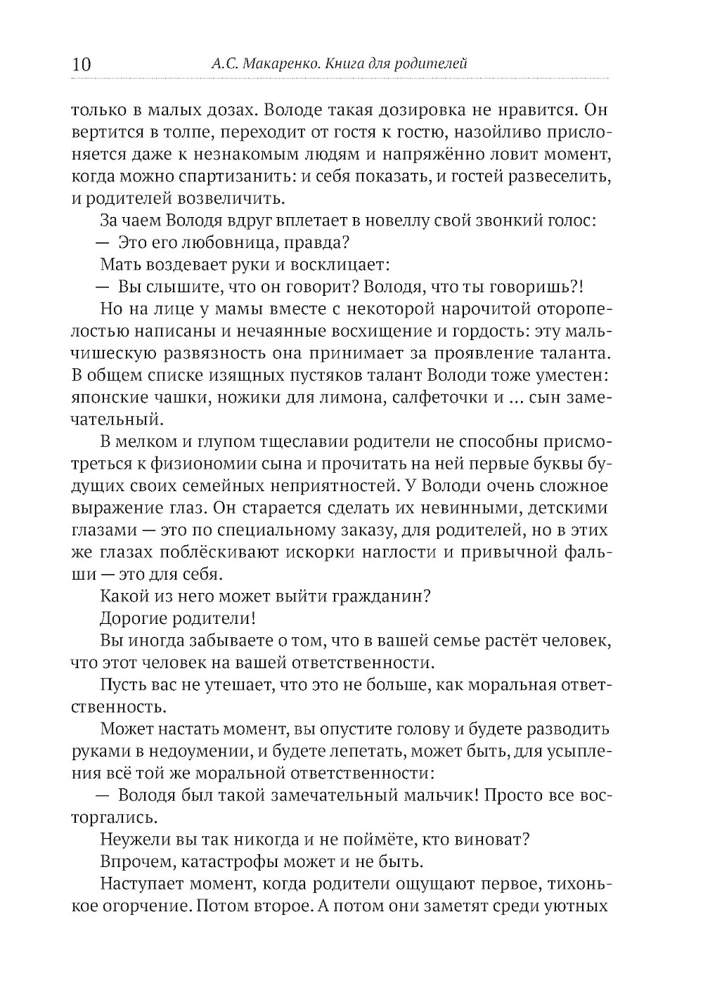 Эта книга - серьёзное исследование процесса воспитания детей. Как сделать так, чтобы ваш ребёнок рос счастливым? Как научить его самостоятельности? Как наладить отношения с детьми? Автор показывает, что воспитание ребёнка - это ответственность не только перед семьёй, но и перед обществом. Антон Макаренко даёт практические советы, основанные на многолетнем опыте работы с детьми. В книге вы найдёте примеры из жизни, которые помогут лучше понять, как вести себя с ребёнком в различных ситуациях, правильно общаться с ним и научить принимать решения. Вы узнаете, какие ошибки часто допускают родители и как их избежать. Вы поймёте, что воспитание детей - это источник радости и удовлетворения, а умение наладить гармоничные отношения со своим ребёнком - ключ к счастливой семейной жизни. Книга будет полезна всем родителям, которые хотят научиться правильно воспитывать своих детей и создать крепкую и доверительную атмосферу в семье.