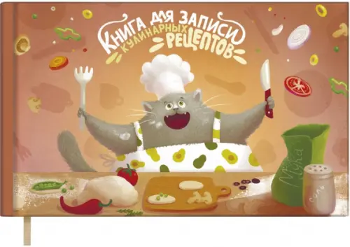Книга для записи кулинарных рецептов, 220х136 мм, 96 л., твёрдый переплёт, полноцветная печать, матовая ламинация. Блок - белый офсет, 65 г/м?, печать в одну краску (пантон) ,