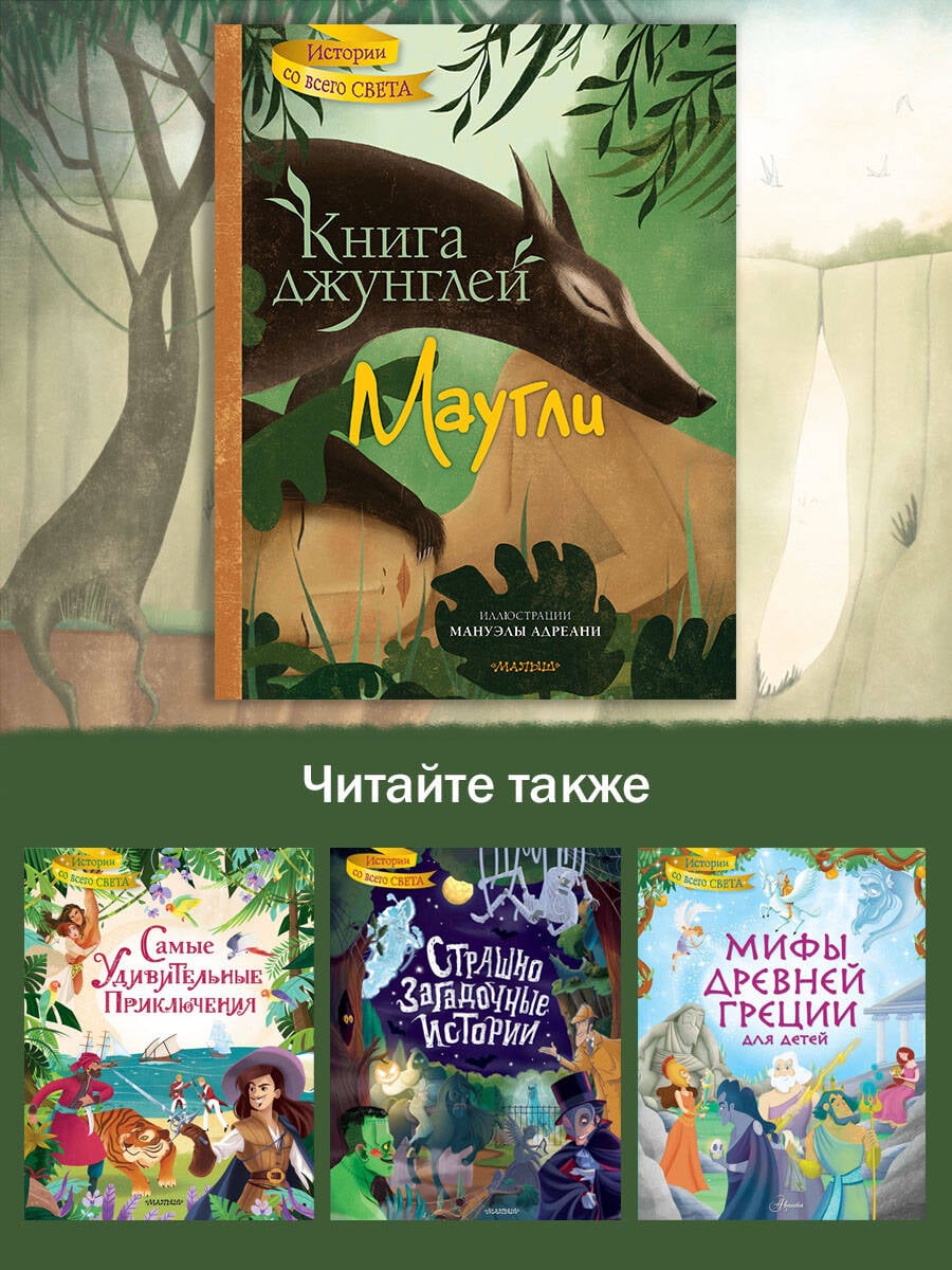 Дремучие индийские джунгли Сиони, человеческий детёныш, воспитанный свободным существом в стае волков, яростное противоборство Человека с тигром и наставничество лесной братии, основанное на справедливости - истории про Маугли, написанные Редьярдом Киплингом для своей дочки и вошедшие в сборник "Книга джунглей", принесли автору славу и стали известны и любимы взрослыми и маленькими читателями по всему миру. Адаптированный текст и необычные красочные иллюстрации итальянской художницы Мануэлы Адреани обязательно понравятся самым юным, начинающим читателям и станут удобным первым знакомством с нестареющей классикой.| Издательство | ИЗДАТЕЛЬСТВО "АСТ" |