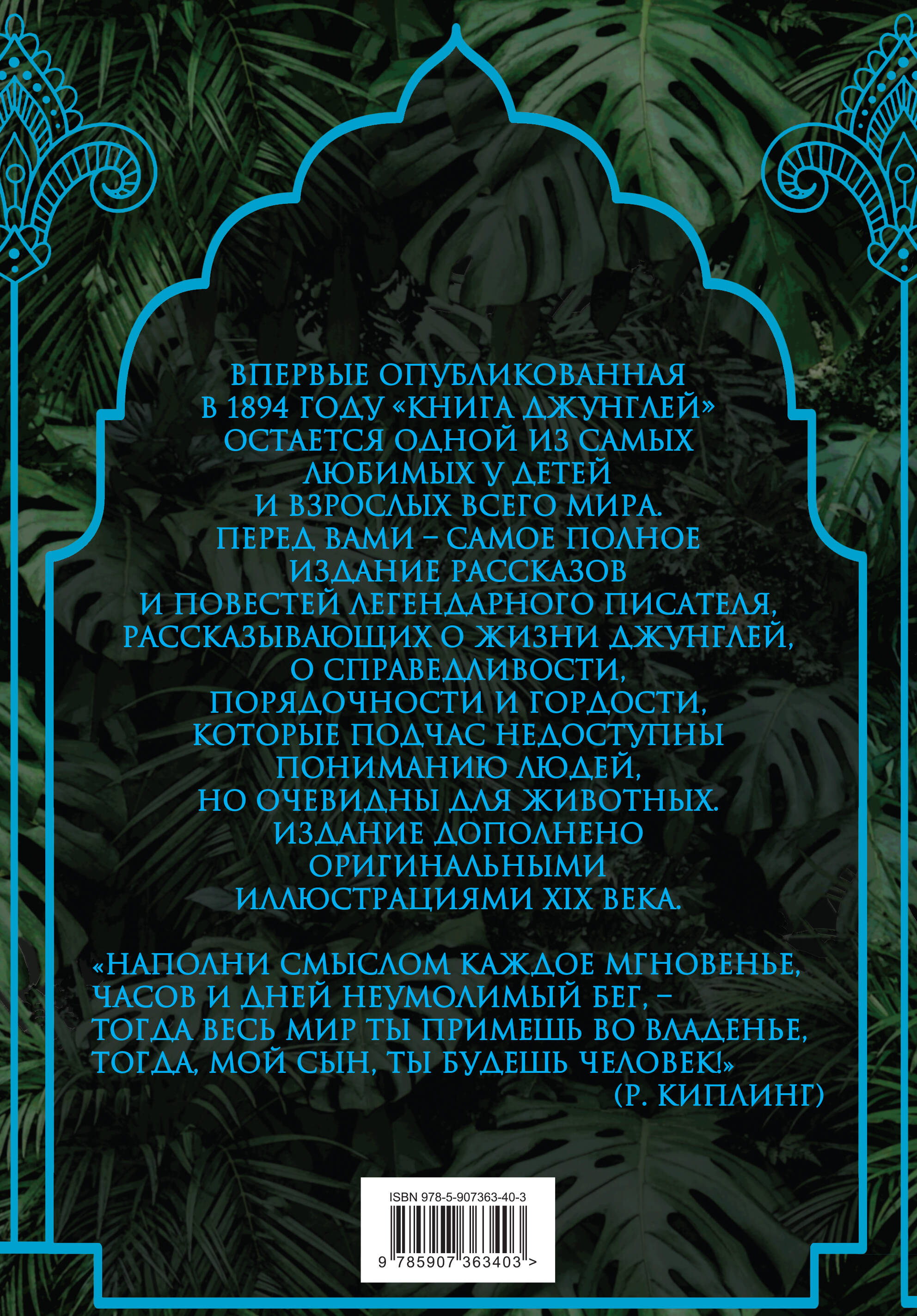 «Наполни смыслом каждое мгновенье, Часов и дней неумолимый бег, - Тогда весь мир ты примешь во владенье, Тогда, мой сын, ты будешь Человек!» (Р. Киплинг) Впервые опубликованная в 1894 году, «Книга джунглей» остается одной из самых любимых у детей и взрослых всего мира. Перед вами - самое полное издание рассказов и повестей легендарного писателя, рассказывающих о жизни Джунглей, о справедливости, порядочности и гордости, которые подчас недоступны пониманию людей, но очевидны для животных. Издание дополнено оригинальными иллюстрациями XIX века.| Издательство | Агентство Алгоритм ООО |