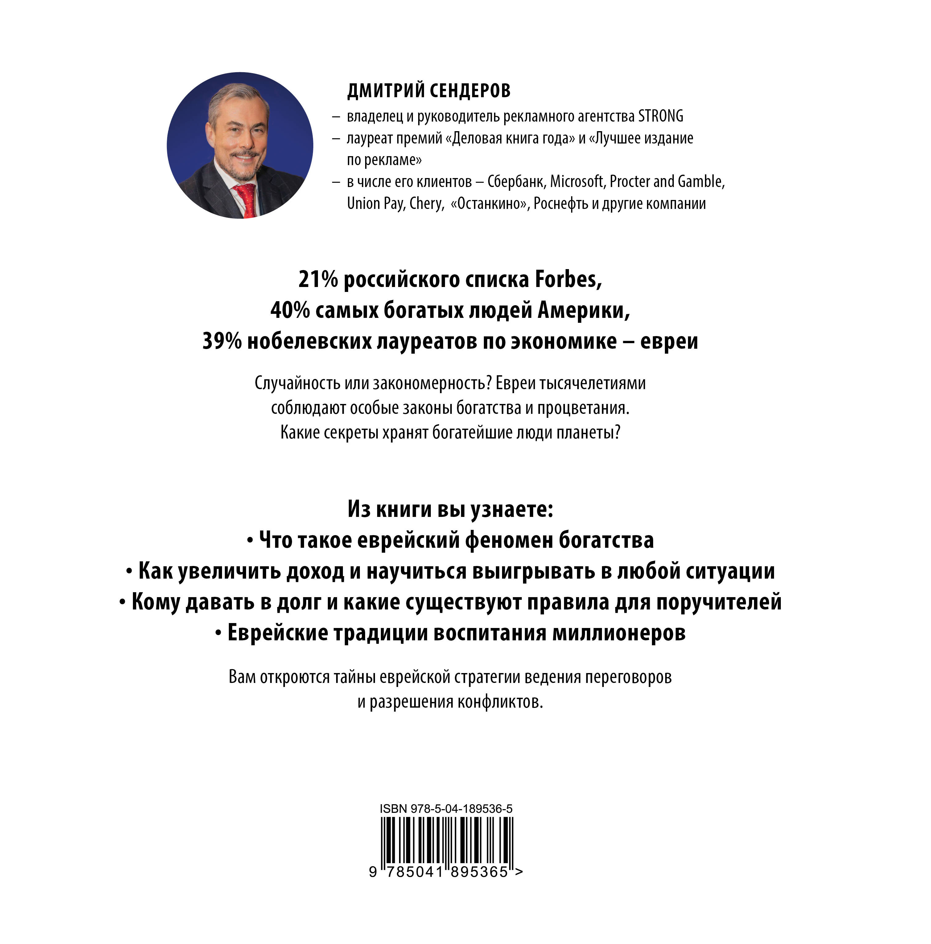 21% российского списка Forbes, 40% самых богатых людей Америки, 39% нобелевских лауреатов по экономике - евреи. Случайность или закономерность? Евреи тысячелетиями соблюдают особые законы богатства и процветания. Какие секреты хранят богатейшие люди планеты? Дмитрий Сендеров - руководитель рекламного агентства STRONG, автор более 300 реализованных рекламных стратегий таких компаний, как Microsoft, Procter and Gamble, Union Pay, Сбербанк, Роснефть и многих других. Более 10 лет он исследовал еврейские законы больших денег. Из его книги вы узнаете: - что такое еврейский феномен создания богатства; - как увеличить доход и научиться выигрывать в любой ситуации; - кому давать в долг и какие существуют правила для поручителей; - еврейские традиции воспитания миллионеров. Вам откроются тайны еврейской стратегии ведения переговоров и разрешения конфликтов.| Издательство | ООО "Издательство "Эксмо" |