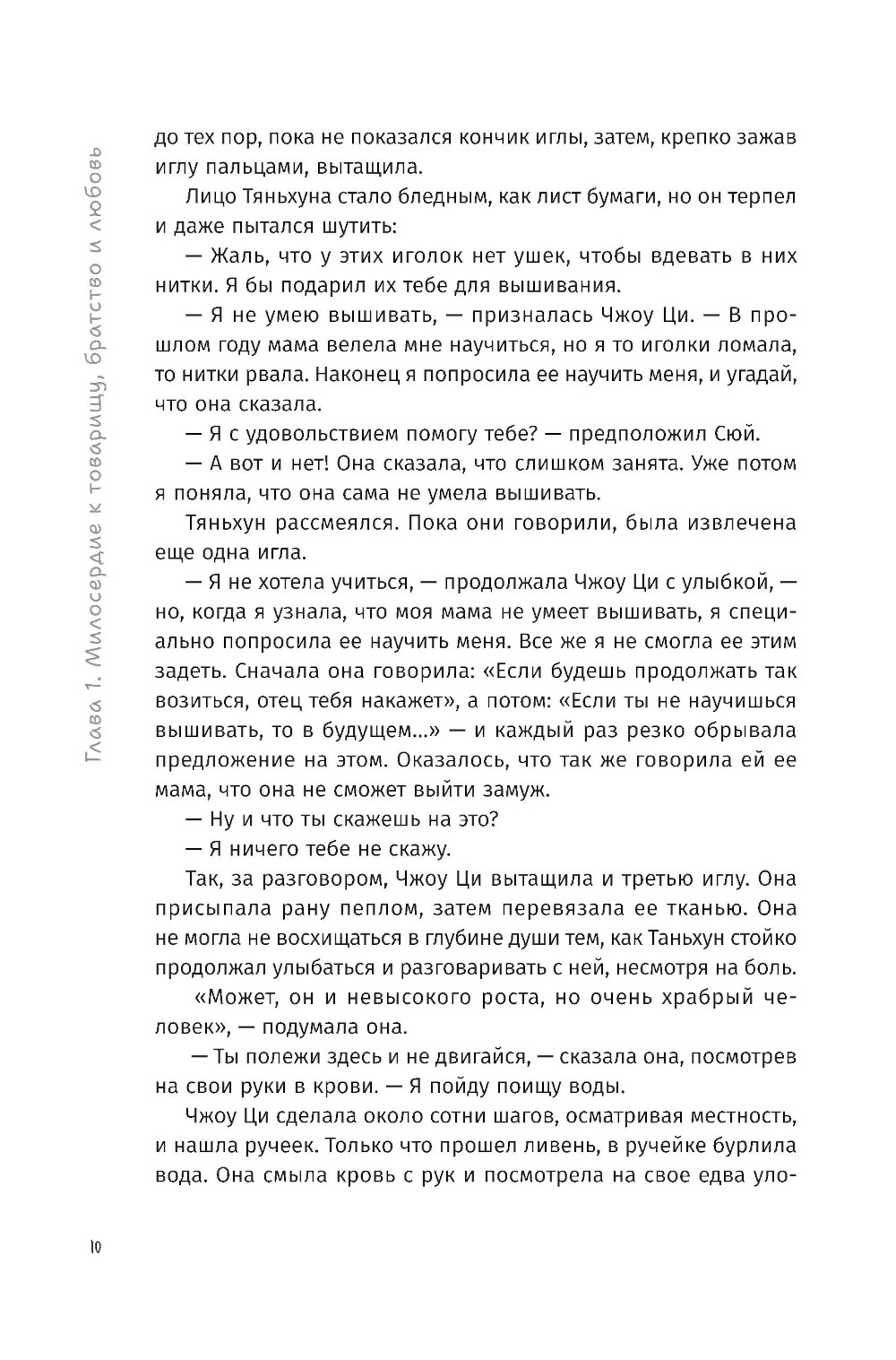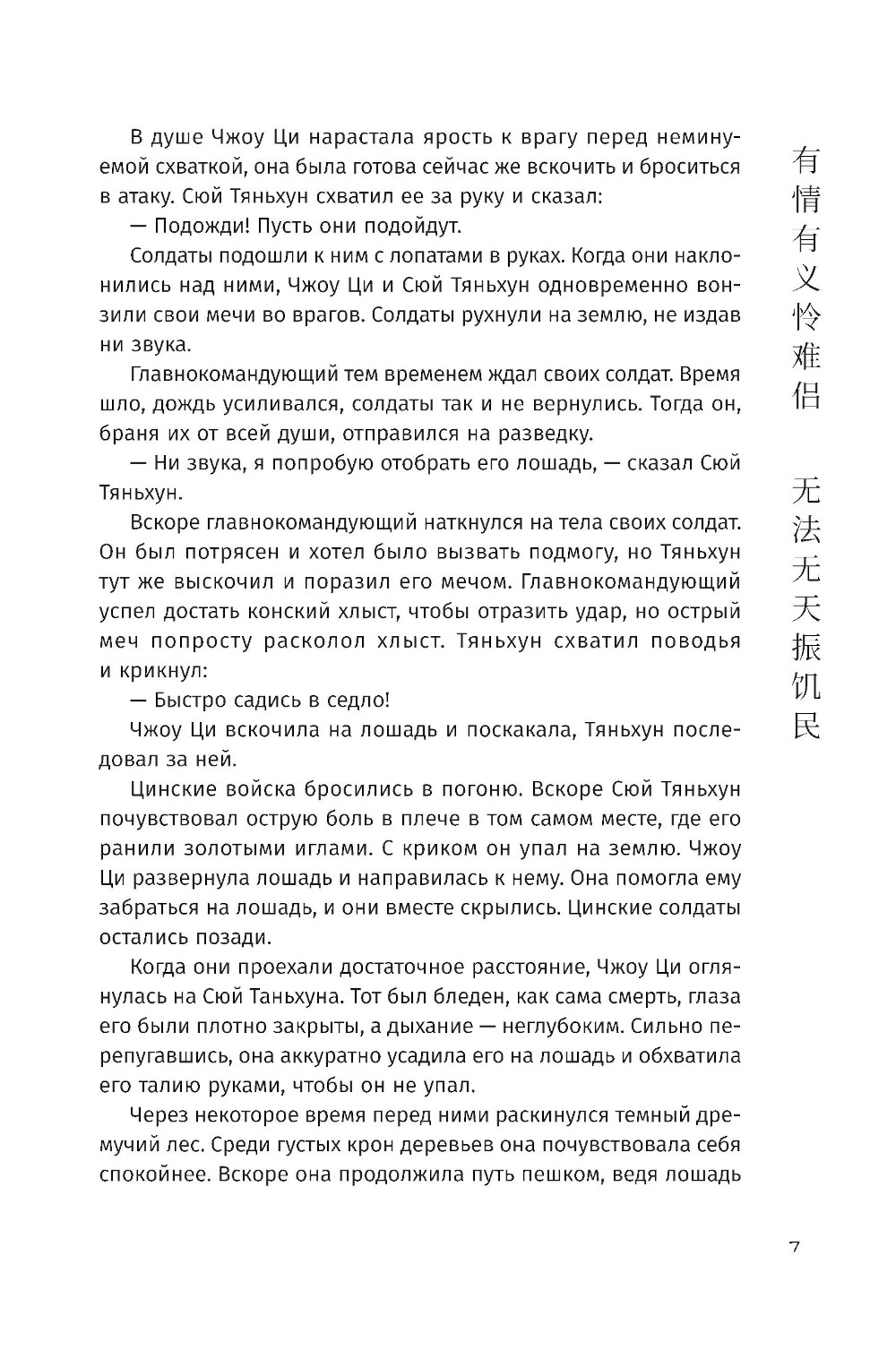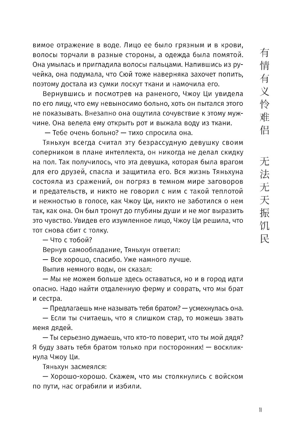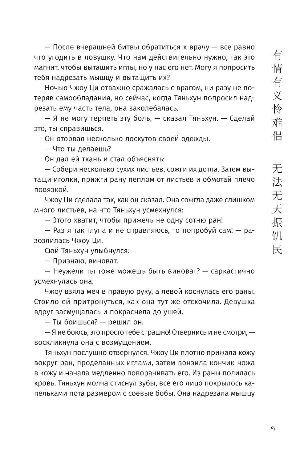 Автор искусно переплетает истории вымышленных и реальных исторических персонажей (император Цяньлун, военачальник Чжаохуэй, "душистая наложница" Сянфей - прототип принцессы Касили), заставляя читателей сопереживать героям и неотрывно следить за развитием сюжета. Вечная борьба добра и зла, безупречное кунг-фу, затерянный город в пустыне, тайна происхождения императора и отважные действия ордена Красного цветка, любовь и месть - лишь часть того, что вы найдете в романе "Книга и меч".