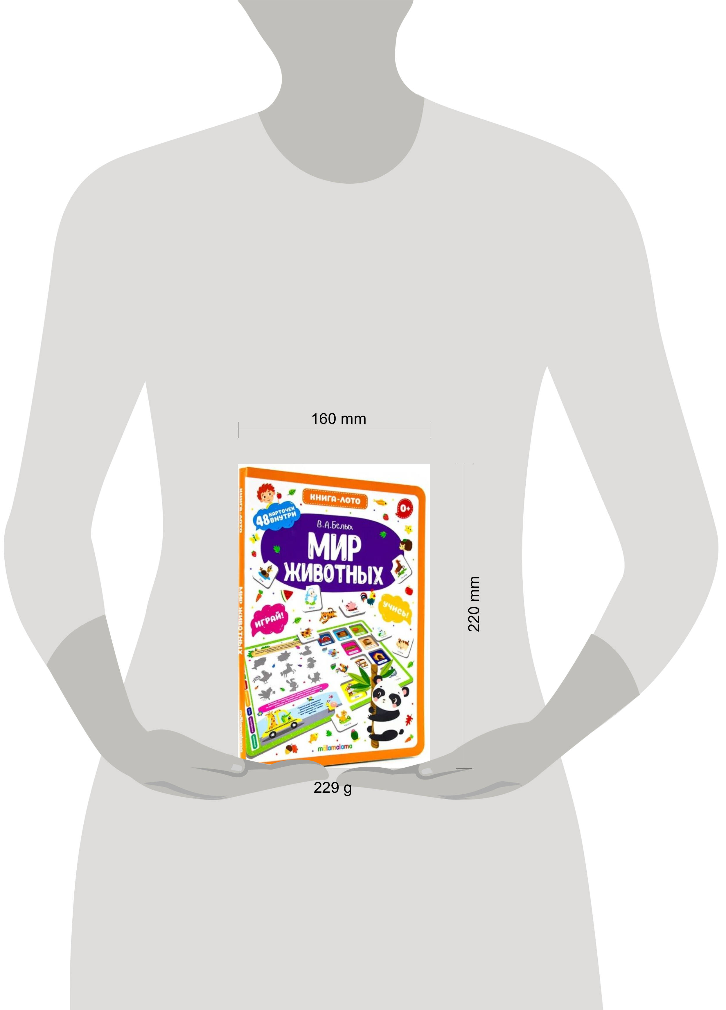 С книгой-лото "Мир животных" ребенок в занимательной форме познакомится многими животными и узнает о них полезную информацию. На 8-ми страницах малыш найдет 48 карточек, которые помогут выполнить множество увлекательных и развивающих заданий, созданных по методике Виктории Белых - педагога-психолога с 25-летним стажем работы с детьми