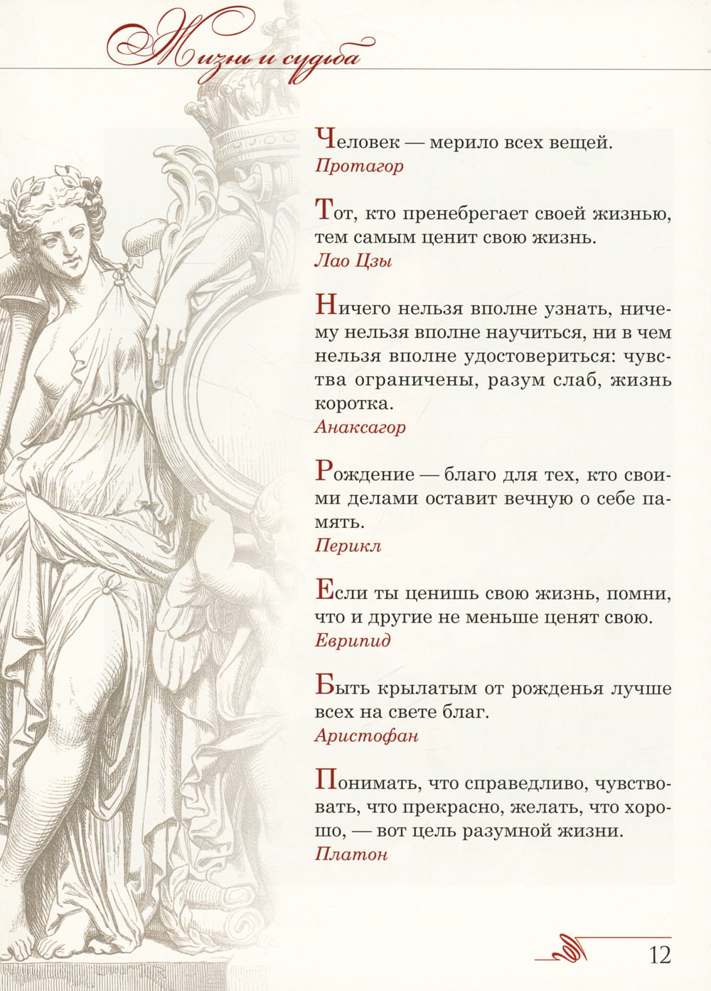 В этой антологии мировой мудрости собрана воедино драгоценная часть интеллектуального наследия человечества - афоризмы, сентенции, образцы изящной литературы, заповеди, жемчужины философских трактатов, вдохновенные поэтические строки. Вы станете свидетелями увлекательного вневременного спора восторженных романтиков с мудрыми философами, аскетов - с поклонниками житейских радостей, великих оптимистов - с заядлыми пессимистами. Здесь встречаются и спорят друг с другом разные взгляды на мир и место человека в нем, и вместо оружия на этом ристалище - меткое и острое слово. Лишь читателю судить, кто окажется победителем в битве вечных истин и великих умов, но порой самые непримиримые идеи на страницах этой книги сходятся, становясь частью грандиозной и непостижимой картины бытия, написанной самой жизнью. Одна из особенностей нашей антологии - уникальные иллюстрации, где мудрость и красота Слова раскрываются шедеврами мировой живописи из коллекций крупнейших музеев мира.