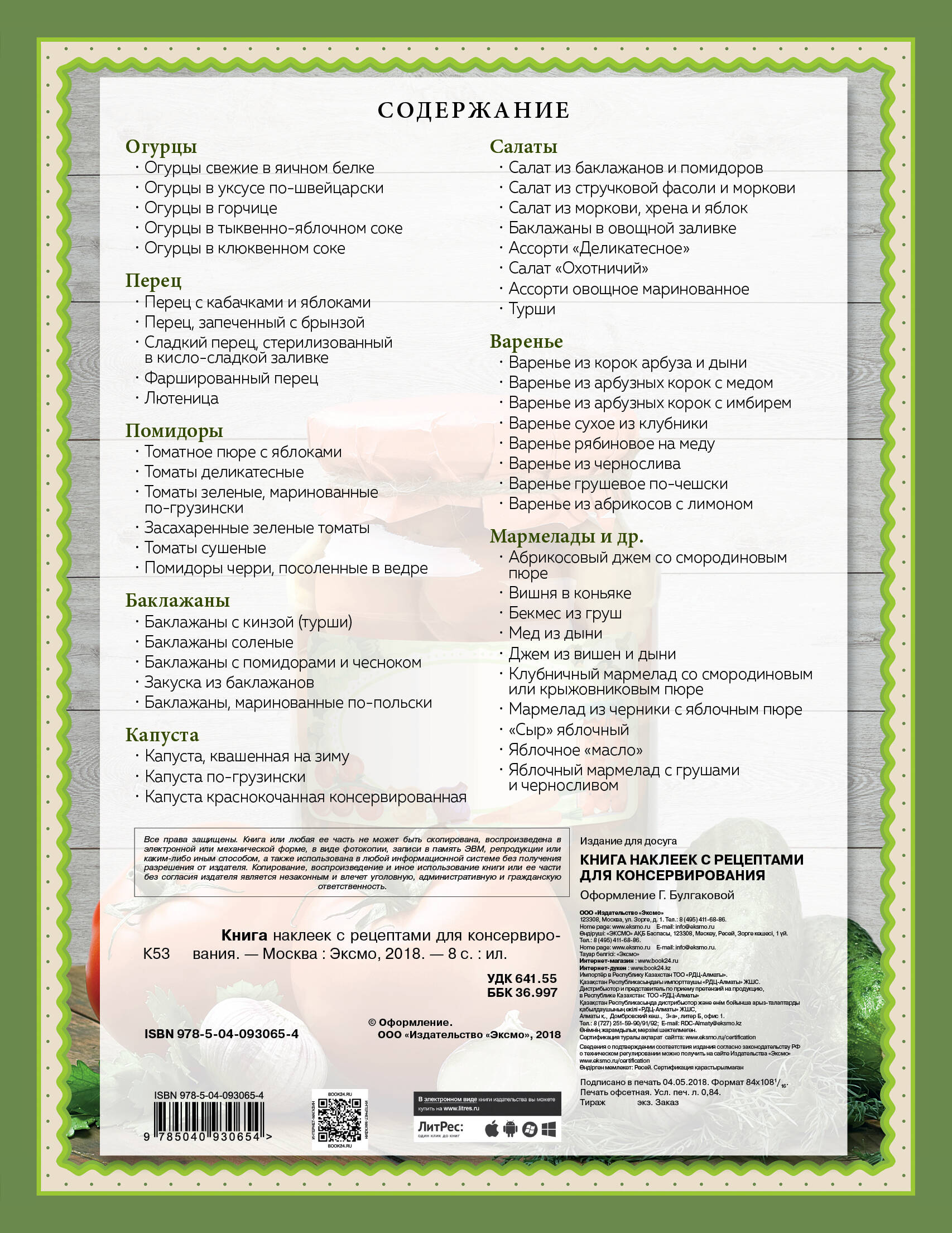 В этой книге вы найдете наклейки как для овощных, так и для фруктовых изделий. А к ним - необычные рецепты заготовок из овощей, фруктов и ягод.