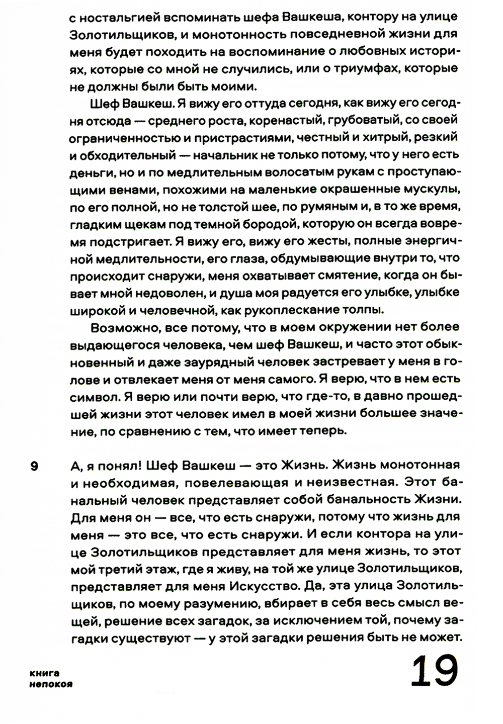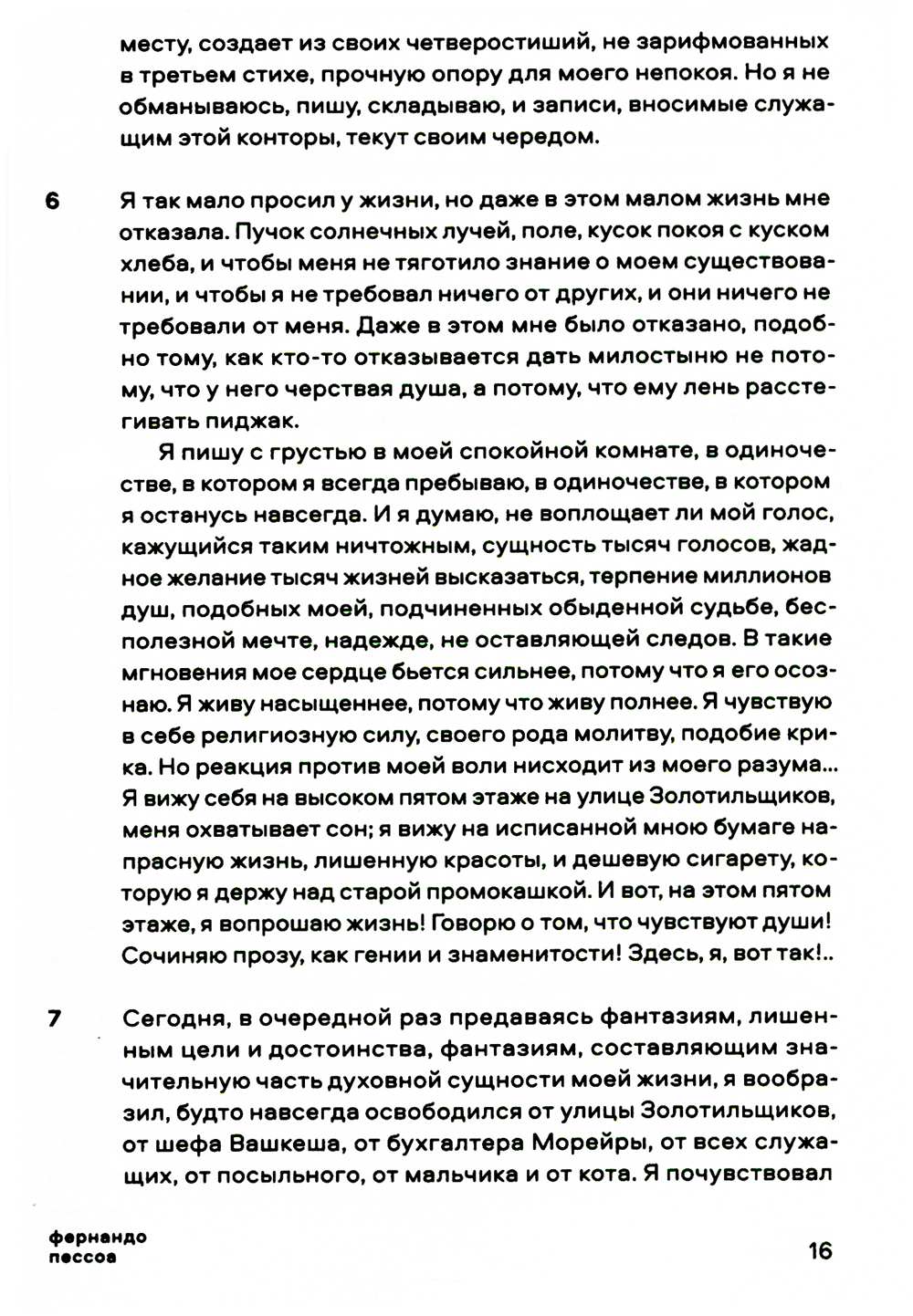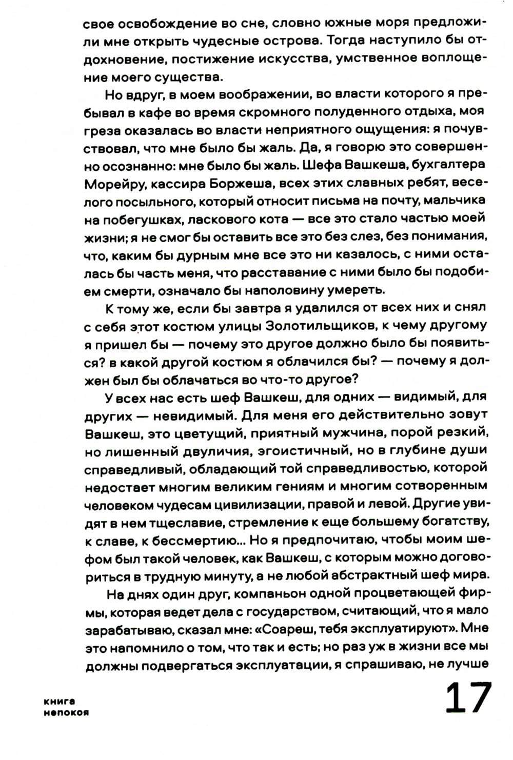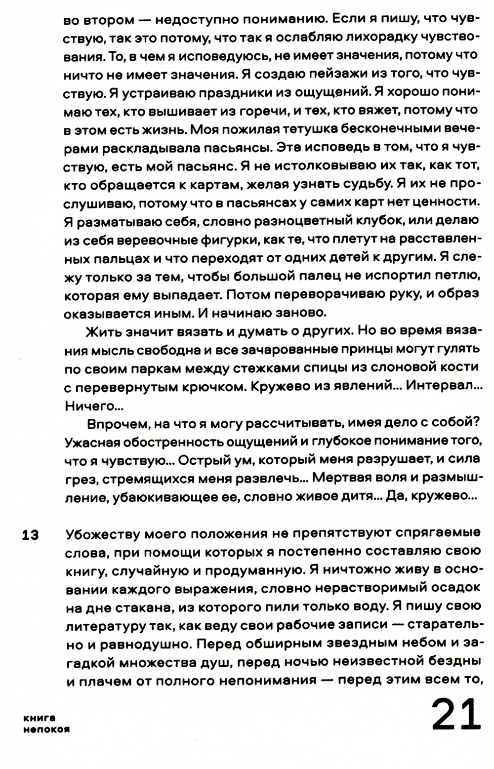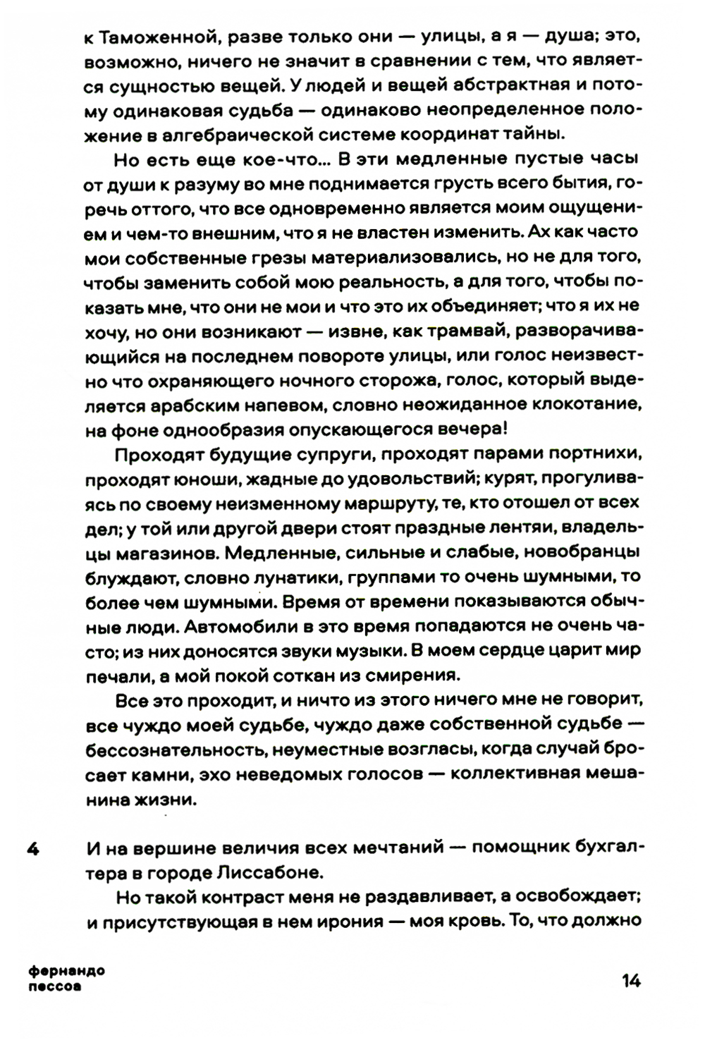 Впервые опубликованная спустя пятьдесят лет после смерти Фернандо Пессоа (1888-1935), великого португальского поэта начала XX столетия, «Книга непокоя» является уникальным сборником афористичных высказываний, составляющих автобиографию Бернарду Соэреша, помощника бухгалтера в городе Лиссабоне, одной из альтернативных личностей поэта. Эта «автобиография без фактов» - проза поэта или поэзия в прозе, глубоко лиричные размышления философа, вербальная живопись художника, видящего через прозрачную для него поверхность саму суть вещей. «Книга непокоя» призвана, загипнотизировав читателя, ввести его в самое сердце того самого «непокоя», той самой жажды-тоски, которыми переполнены все произведения Пессоа. Помимо «Книги непокоя», публикуемой в новом переводе Александра Дунаева, настоящее издание содержит заметки и отрывки из писем Фернандо Пессоа.