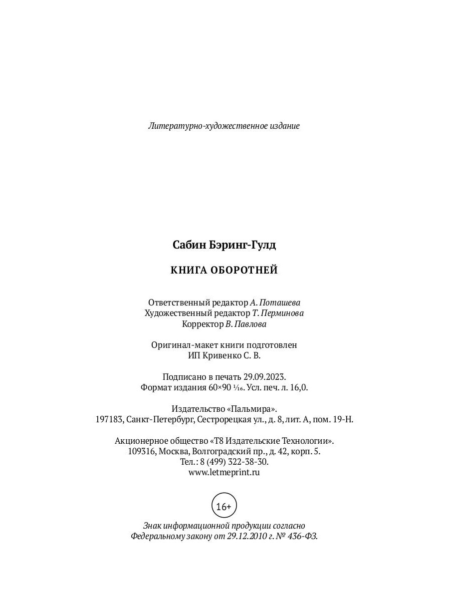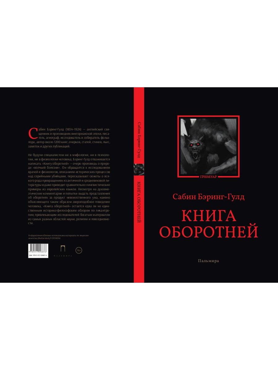 "Книга оборотней" - очерк-проповедь англиканского священника, исследователя и писателя Сабина Бэринг-Гулда. Пытаясь проникнуть в неведомые глубины сознания, чтобы объяснить извращение природных инстинктов, в народном представлении воплощенное в образе человека-зверя, Бэринг-Гулд собирает самые разные тексты: от описаний исторических процессов над серийными убийцами до преданий о лебединых девах и устрашающих быличек о вервольфах в период от позднего Средневековья до XIX века.| Издательство | Т8 RUGRAM |