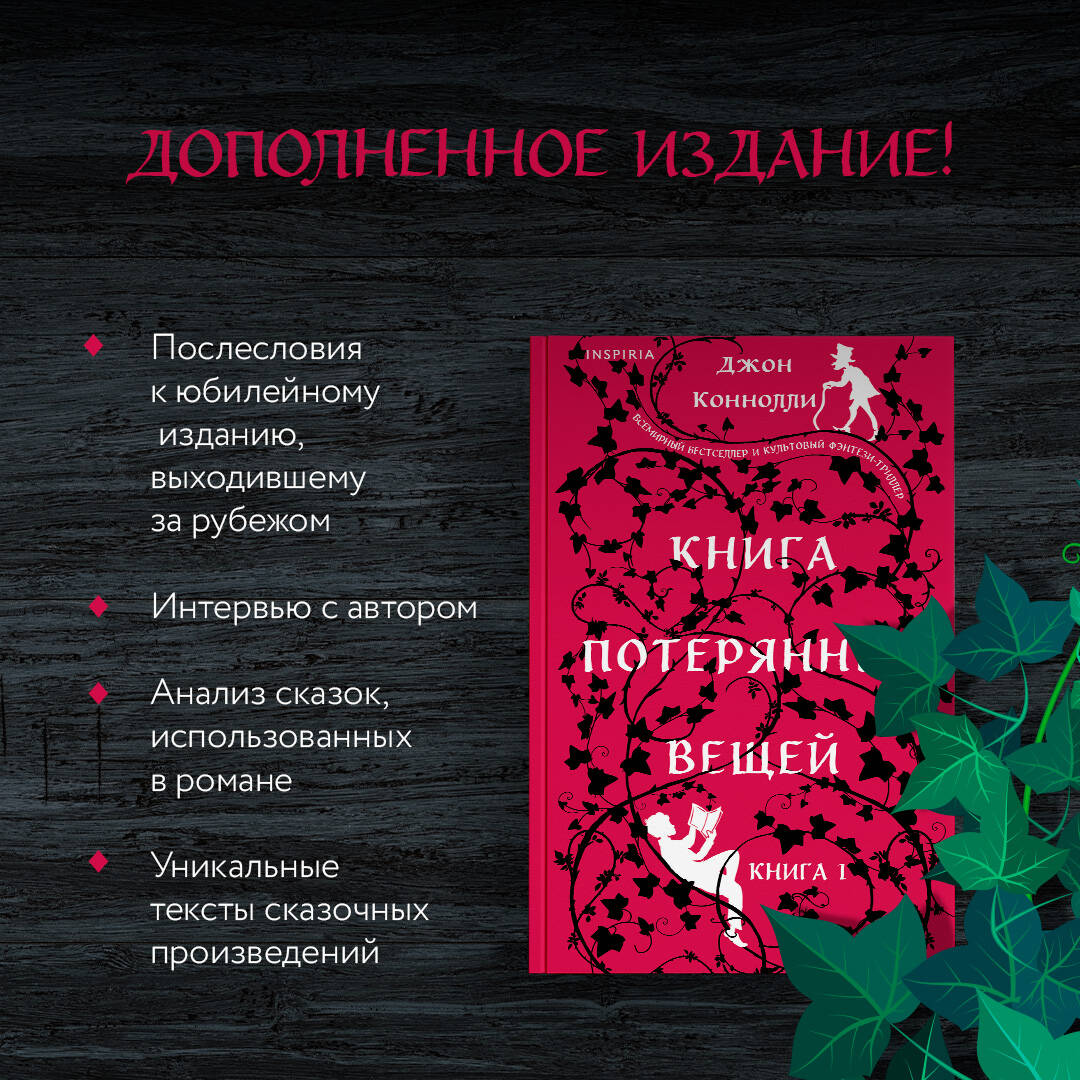 ВСЕМИРНЫЙ БЕСТСЕЛЛЕР И КУЛЬТОВЫЙ ФЭНТЕЗИ-ТРИЛЛЕР. ОБЛАДАТЕЛЬ ПРЕМИИ ALEX AWARDS. ЗДЕСЬ СТИВЕН КИНГ ВСТРЕЧАЕТСЯ С БРАТЬЯМИ ГРИММ. Попасть сюда нелегко. Но выбраться - гораздо труднее. Тем более сохранив свою жизнь… После смерти матери Дэвид чувствует себя ужасно одиноким. Компанию ему составляют лишь книги на полке. Постепенно эти книги начинают шептаться с ним во тьме. Найдя убежище в мифах и сказках, которые так любила его мать, мальчик обнаруживает, что реальный мир и мир фантазий сливаются. А потом к нему пришел Скрюченный Человек. Пришел и с насмешливой улыбкой сказал: «Добро пожаловать, Ваше Величество. Слава новому королю…» И пока в Европе бушует Вторая мировая война, Дэвид переносится в страну, оказавшуюся странным, пугающе реальным отражением нашего мира. Страну, сплетенную из мифов и историй, населенную волками, похожими на людей, и людьми, которые хуже волков. Страну, где правит увядший король, хранящий свои секреты в легендарной «Книге потерянных вещей»… ------------------------------------------------------------------------------------------------------------ «Это мир, где сказки становятся явью. Но такой, что буквально мороз по коже…» - The Times «Эта книга увлекательна, клаустрофобна и зловеща; при этом она определенно пейдж-тернер». - Guardian «Это не слащавая сказочка, а скорее жуткий миф». - Daily Mail «Сильный, очень сильный писатель… и потрясающая книга». - Джеффри Дивер «Коннолли настолько хорош, что это даже пугает». - The Times «Коннолли с виртуозной легкостью рассказывает о вещах, о которых чрезвычайно трудно рассказывать». - Daily Mirror «Коннолли создает самые редкие книги - те, чьи сюжеты захватывают все ваше внимание, но при этом они написаны изысканным, блестящим языком». - Daily Mail| Издательство | ООО "Издательство "Эксмо" |