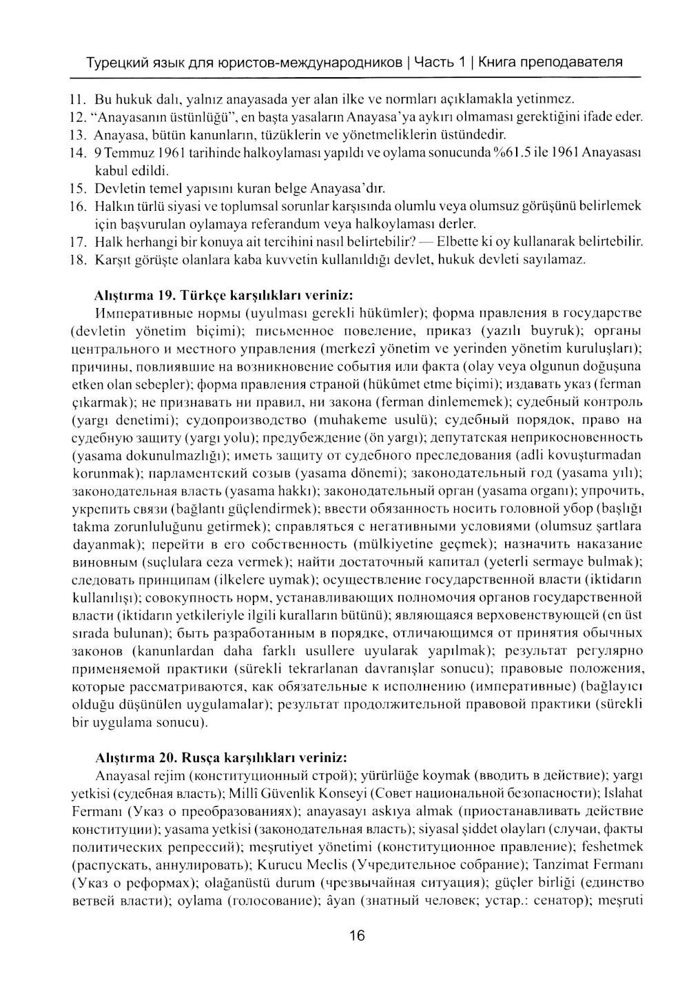 Книга преподавателя к учебнику Турецкий язык для юристов-международников. В 2 ч. Ч. 1: Учебно-методическое пособие