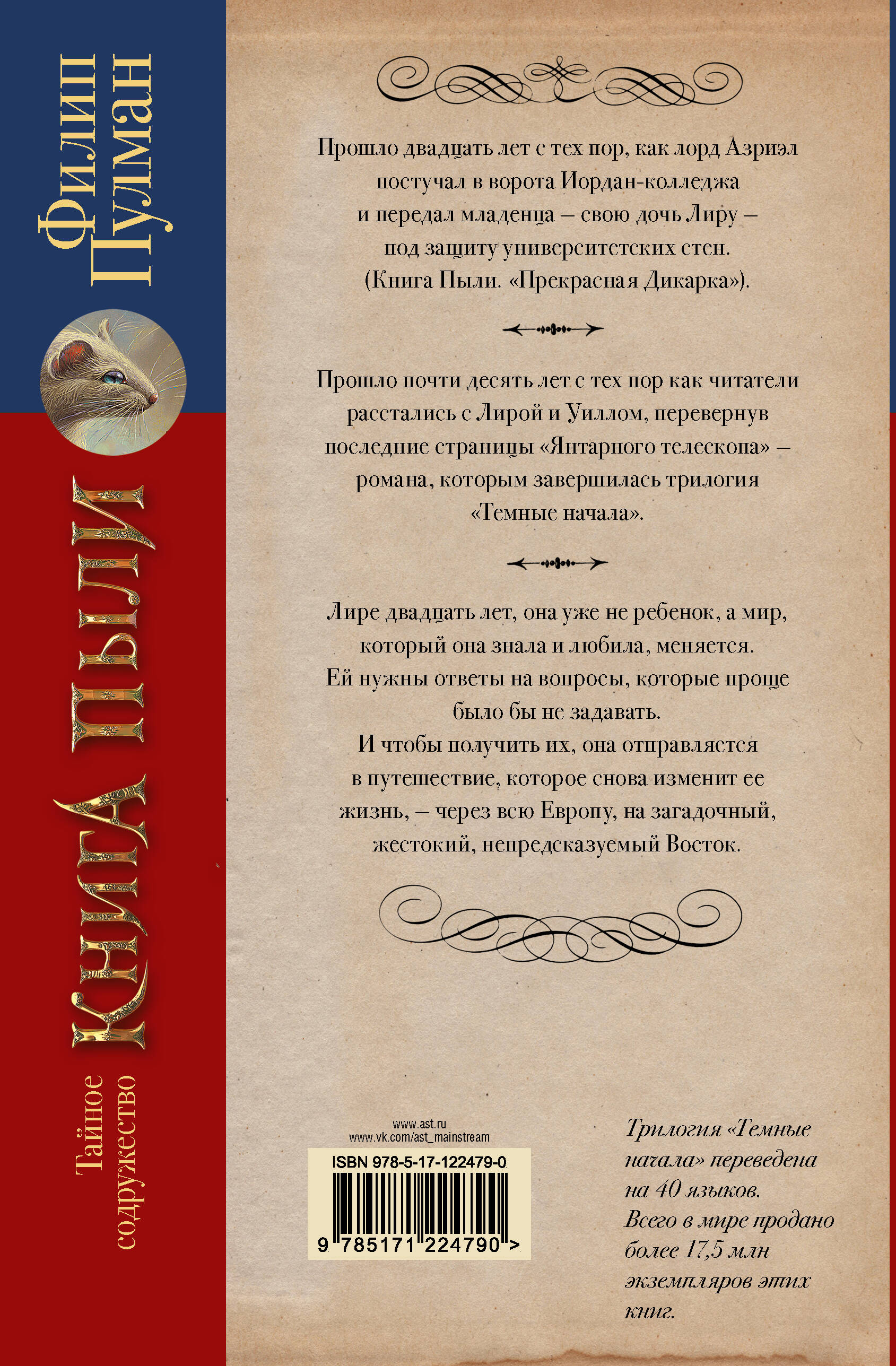 Предыстория блистательной трилогии «Темные начала» - настоящее событие не только для поклонников таланта Филипа Пулмана, но и для всех любителей жанра фэнтези. Уже знакомые читателю и новые, но ничуть не менее яркие герои и их деймоны, но главное - удивительный мир, в котором тесно переплетены магия, теология и наука. Мир, в котором рядом с людьми живут ангелы и ведьмы, гарпии и панцербьёрны, галливспайны, туалапии, мулефа и прочие удивительные существа. Мир, из которого не хочется возвращаться. Недалеко от Оксфорда, на берегу Темзы, живет простой одиннадцатилетний мальчишка по имени Малкольм Полстед. Он помогает родителям, которые содержат трактир, обитательницам женского монастыря на другом берегу реки, и очень хочет учиться в настоящей школе. Однажды Малкольм узнает, что в монастыре появился необычный гость. Это маленькая девочка. Ее зовут Лира Белаква… Трилогия «Темные начала» переведена на 40 языков. Всего в мире продано более 17,5 млн экземпляров этих книг.