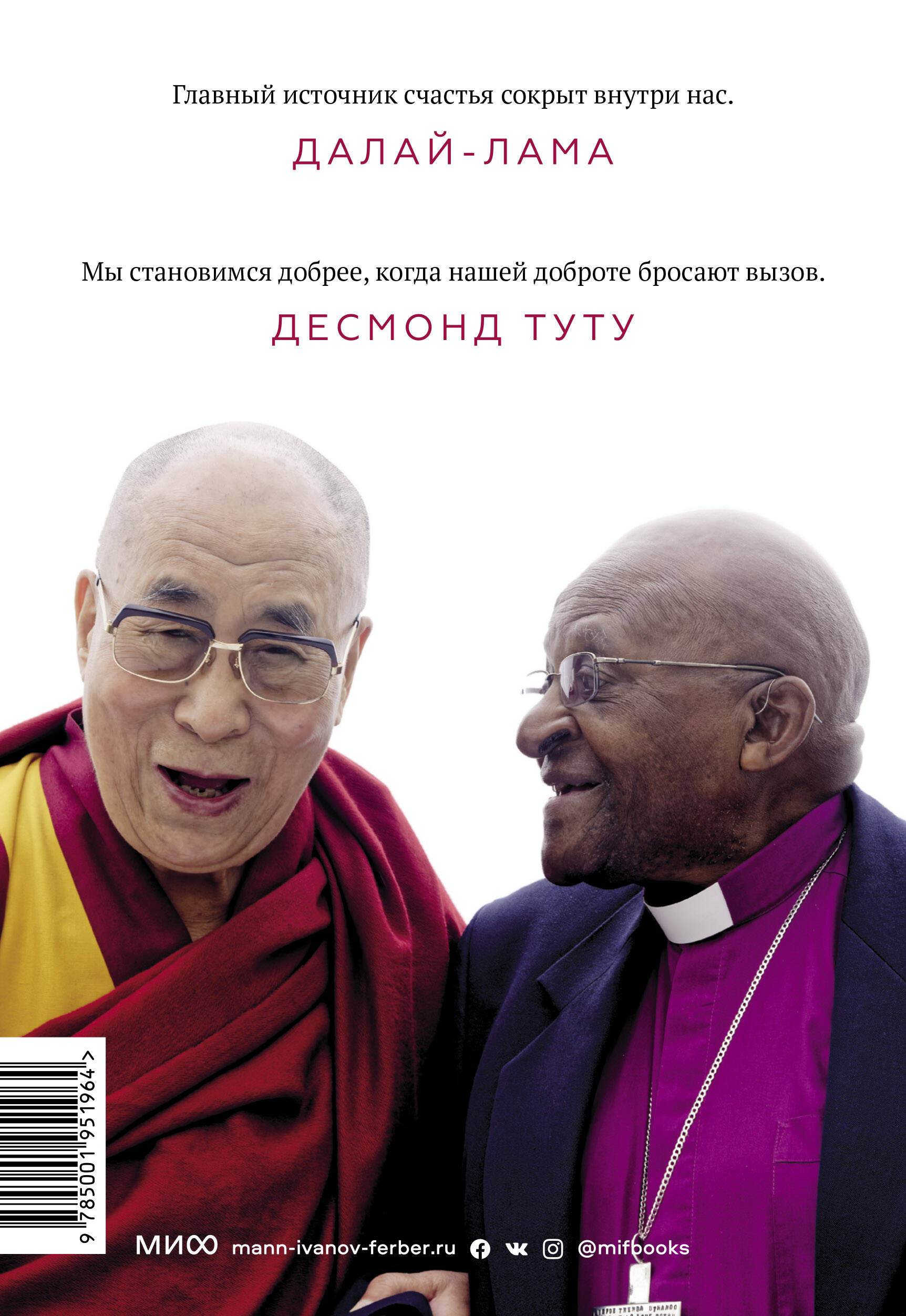 Два великих духовных лидера. Пять дней. Один вечный вопрос. В апреле 2015 года два самых радостных человека на свете - лауреаты Нобелевской премии Далай-лама и архиепископ Туту - встретились в Дхарамсале, чтобы отметить восьмидесятый день рождения Его Святейшества, оглянуться на прожитые годы, полные непростых испытаний, и найти ответ на вечный вопрос: как найти радость в жизни, когда нас обуревают повседневные невзгоды - от недовольства дорожными пробками до страха, что мы не сможем обеспечить семью, от злости на тех, кто несправедливо с нами обошелся, до горя утраты любимого человека, от опустошенности, которую приносит тяжелая болезнь, до бездны отчаяния, приходящей со смертью? Диалоги велись в течение недели. Духовные мастера обсуждали препятствия, которые мешают нам радоваться жизни, подробно проговаривали негативные эмоции, их воздействие на человека и главное - ответ на вопрос "что делать?". Как справиться с гневом, яростью, горем утраты, отчаянием, разочарованием, завистью? Отвечая на вопросы, Далай-лама и архиепископ приводят примеры из своей жизни, общаясь с читателем на равных, все время подчеркивая, что каждому человеку, будь он духовным лидером или одним из современных людей, живущих в суете материалистического мира, свойственны одни и те же эмоциональные реакции. Все мы испытываем зависть, злимся и теряем близких, разница в том, как мы реагируем. Мужество Далай-ламы и архиепископа, их стойкость и неунывающая вера в человечность вдохновляют миллионы людей. Они не поддаются модному цинизму, волна которого захлестывает нас сегодня. Их умение радоваться жизни не поверхностно и далось им непросто; оно закалено в огне конфликтов, противостояния и борьбы. Их судьба: неустанное напоминание о том, что радость жизни - право, данное нам от рождения. Радость - понятие намного более глубокое, чем счастье. В конце книги приведен перечень практик - простых упражнений, которые помогут выровнять психологическое состояние и сохранить внутренний стержень во времена стрессов и тревог. От авторов: Мы приехали в Дхарамсалу на неделю, чтобы отпраздновать наши дни рождения, пообщаться, как старые друзья, и создать нечто, что может стать именинным подарком для других. Что может быть радостнее рождения? Но сколько времени мы проводим в печали, напряжении и страданиях? Смеем надеяться, что эта небольшая книга приоткроет вам дверцу в мир радости и счастья. Соавтор нашей книги Дуглас Абрамс любезно согласился содействовать нам в этом проекте и в течение недели беседовал с нами в Дхарамсале. По нашей просьбе он объединил наши ответы и его собственное повествование, чтобы читатели могли узнать не только о нашем видении и личном опыте, но и о том, что говорят ученые и прочие великие умы об источнике радости. Верить нам вовсе не обязательно. Напротив, не стоит принимать наши слова за аксиому. Мы, двое друзей, принадлежащих к двум очень непохожим мирам, делимся с вами тем, чему были свидетелями, и тем, чему научились за долгую жизнь. Мы надеемся, что вы попробуете применить наши знания на практике и тогда поймете, есть ли истина в наших словах. Каждый день нам выпадает шанс начать с начала. Каждый день - наш день рождения. Для кого эта книга: Для каждого из нас. Для всех, кто мечтает обрести гармонию и радоваться жизни.