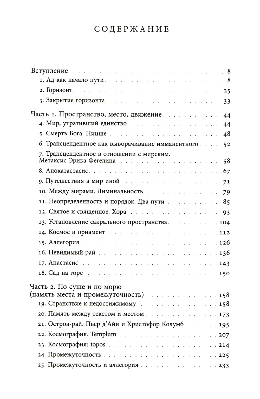 Эта книга рассказывает о попытках людей найти путь к раю, то есть к неведомому, невообразимому, трансцендентному. Стремление к неведомому и недостижимому в какой-то момент начинает определять антропологию человека, вступающего в мир, наделенный развитием, то есть историей. Ямпольский рассматривает разные варианты этого экзистенциального пути, который полагает в качестве цели в одних случаях рай земной (то есть условно достижимый), а в иных - рай небесный, по определению недосягаемый. Разные представления о рае предполагают разные стратегии его достижения - от путешествия души в сновидениях, ее вознесения после смерти или в мистическом экстазе до паломничества, крестового похода или мореплавания. Стремление к трансцендентному определяет не только теологию, но даже отношение к текстам и уровням их значения, когда переход от буквального смысла к аллегорическому начинает приравниваться к восходящему движению души. Эта сосредоточенность на пути в значительной степени определяет и общую модель мира - космографию. Книга охватывает время от поздней Античности до Возрождения и уделяет особое внимание Данте. Исторический материал, однако, нужен автору и для того, чтобы напомнить читателю, что человек - не просто обитатель места, но по определению homo viator, человек странствующий. Такое напоминание приобретает особое значение в нынешнюю эпоху миграций и насильственной утраты домашнего очага.| Издательство | Новое литературное обозрение |