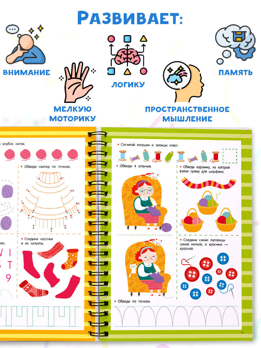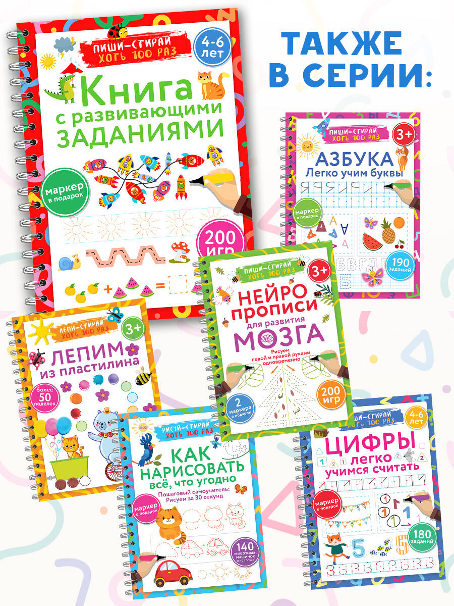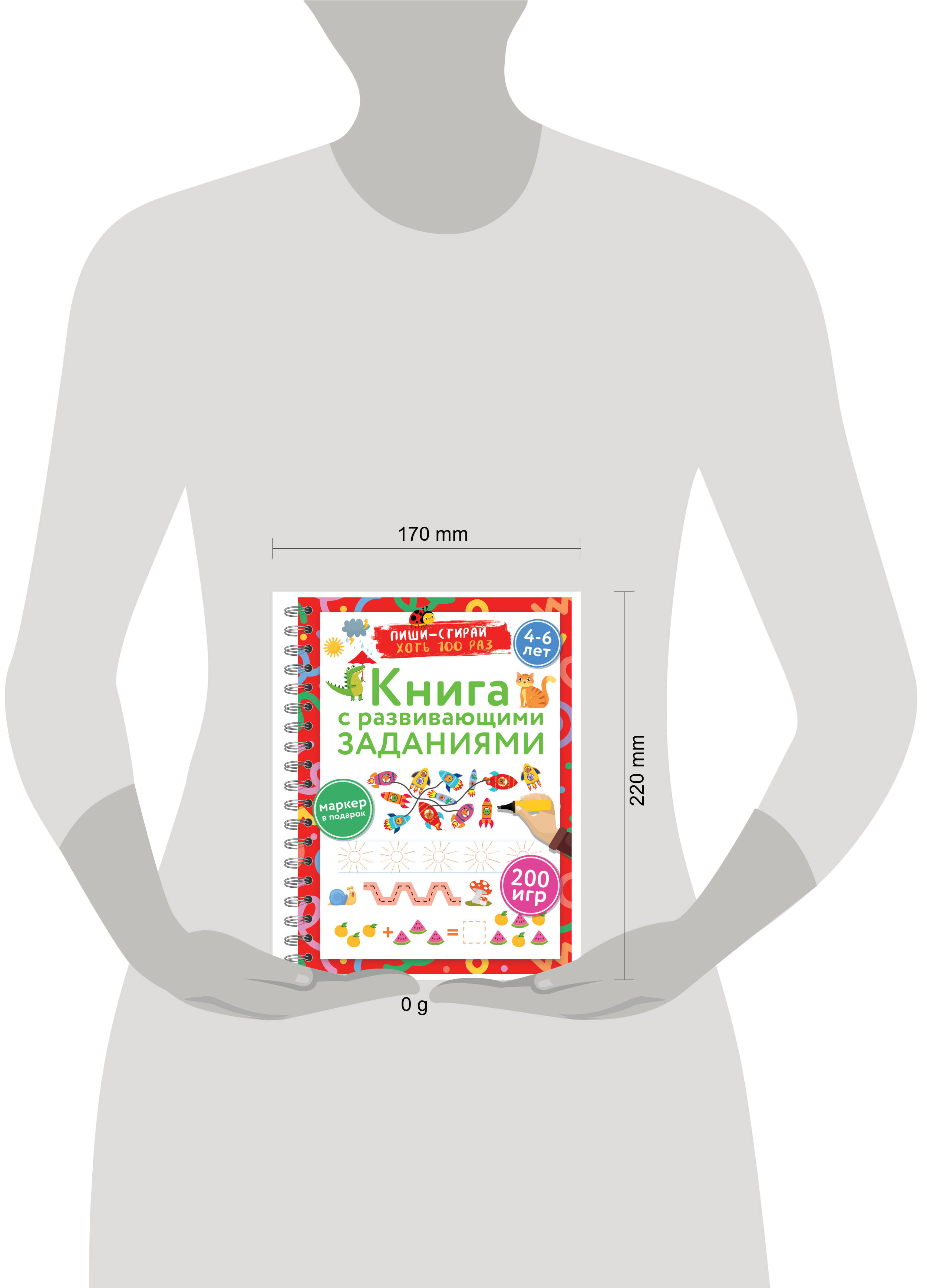 Представляем вашему вниманию удобную многоразовую рабочую книгу-тетрадь для детей от 4 до 6 лет с набором развивающих заданий на каждой странице. Теперь ваш малыш сможет писать и стирать, исправлять ошибки и снова начинать с чистого листа благодаря специальному маркеру, который идеально подходит для письма на ламинированных страницах. Книга имеет большой формат, поэтому содержит множество разнообразных заданий: игры с буквами и словами, игры с цифрами и числами, задания для развития внимания, логики, памяти, мелкой моторики, пространственного мышления. Мелованный картон делает книгу более прочной и износостойкой. Удобная спираль позволяет легко перелистывать плотные страницы. Книгу можно использовать дома, на уроках в детском саду и даже в дороге. Подарите вашему малышу возможность с лёгкостью и весельем получать новые знания и полезные навыки!| Издательство | Издательство "АСТ" |