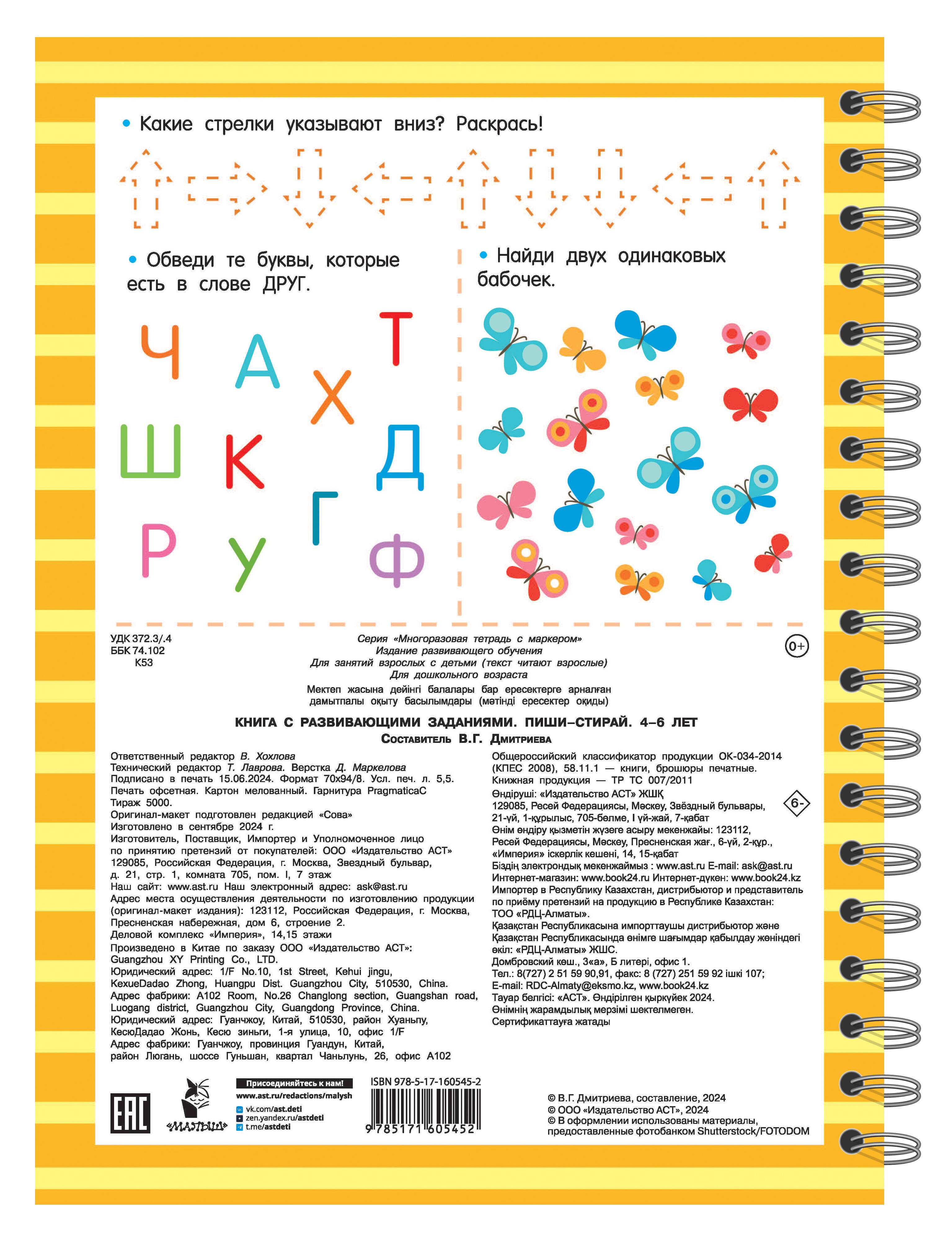 Аннотация: Книга с развивающими заданиями. Пиши–стирай. 4–6 лет