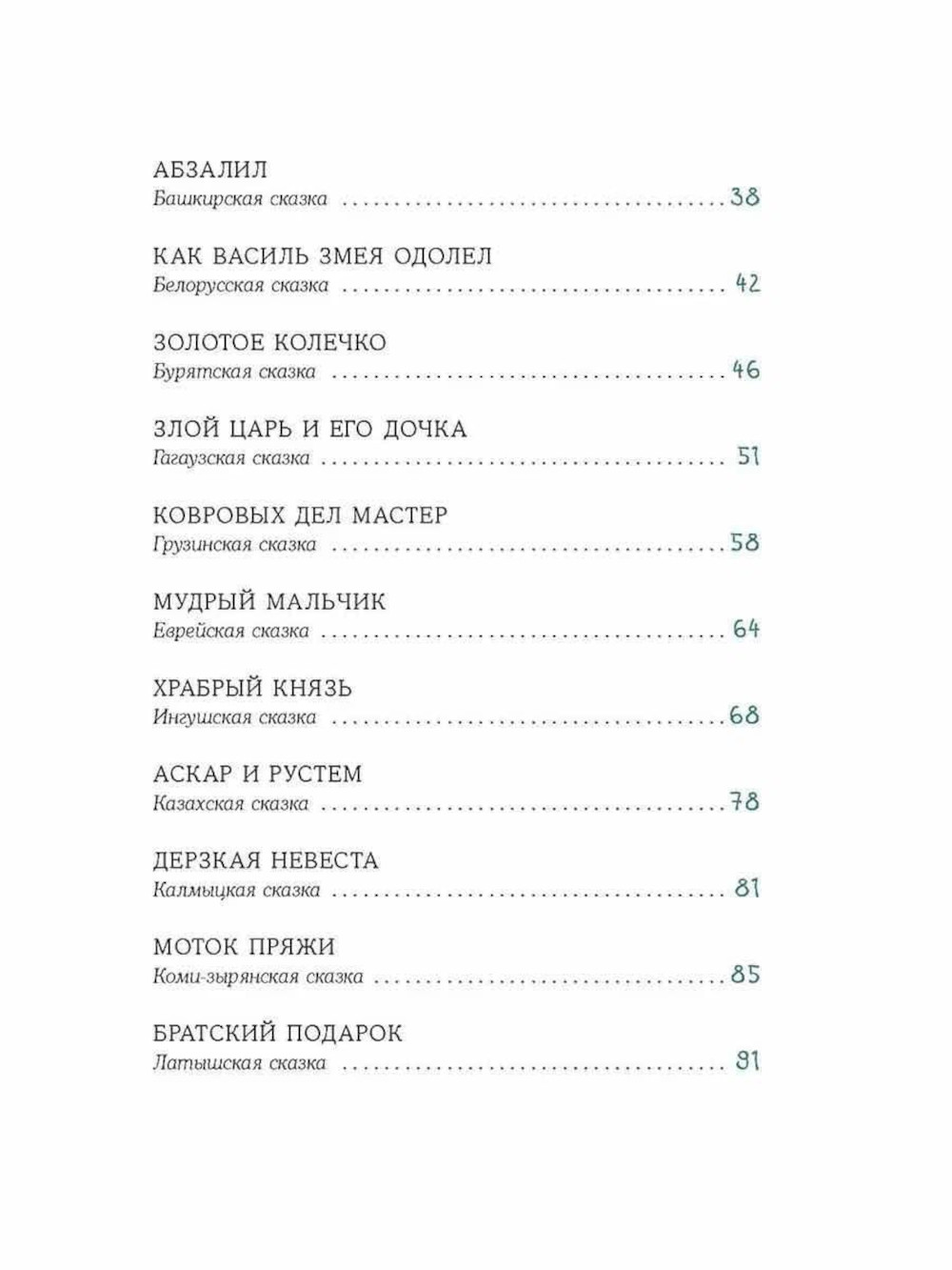 В этой книге собраны волшебные сказки народов, которые населяют нашу огромную страну. Не всех, потому что тогда получилась бы слишком толстая книга, которую в руках не удержишь. Ведь в России проживают более 190 народов, которые говорят каждый на своём языке! Но у всех народов, какими бы ни были они разными, существуют одинаковые понятия о добре и зле, о хорошем и дурном, о красоте и уродстве, о честности и бесчестье. Для среднего школьного возраста.
