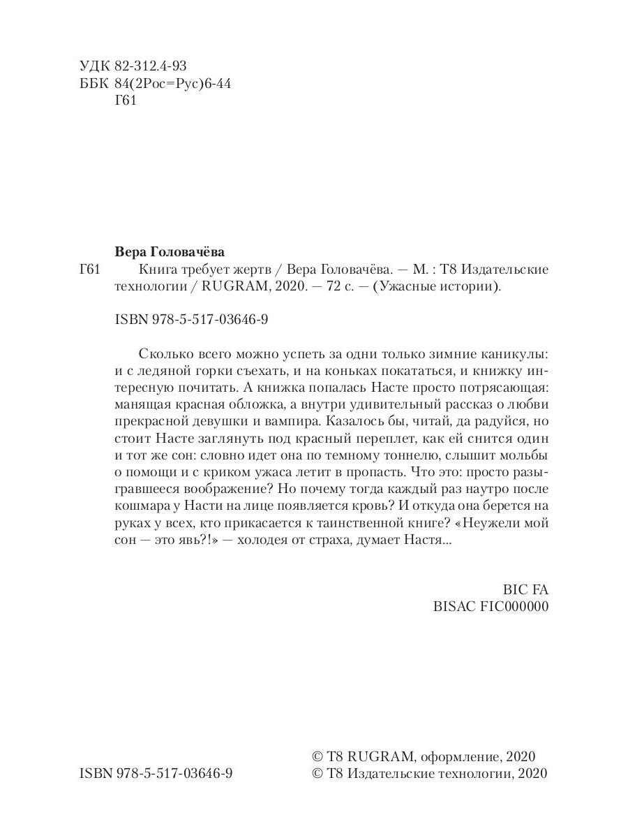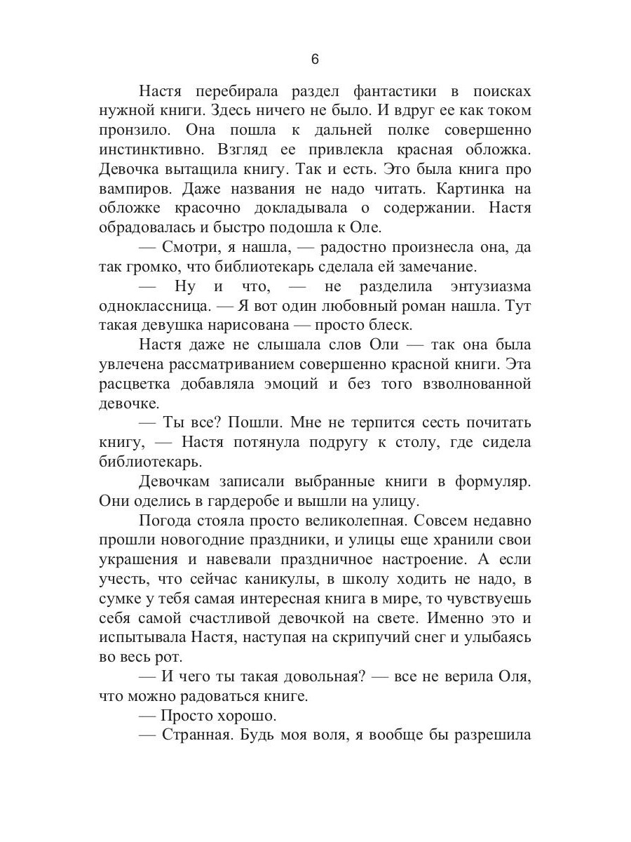 Сколько всего можно успеть за одни только зимние каникулы: и с ледяной горки съехать, и на коньках покататься, и книжку интересную почитать. А книжка попалась Насте просто потрясающая: манящая красная обложка, а внутри удивительный рассказ о любви прекрасной девушки и вампира. Казалось бы, читай, да радуйся, но стоит Насте заглянуть под красный переплет, как ей снится один и тот же сон: словно идет она по темному тоннелю, слышит мольбы о помощи и с криком ужаса летит в пропасть. Что это: просто разыгравшееся воображение? Но почему тогда каждый раз наутро после кошмара у Насти на лице появляется кровь? И откуда она берется на руках у всех, кто прикасается к таинственной книге? «Неужели мой сон - это явь?!» - холодея от страха, думает Настя…| Издательство | Т8 RUGRAM |