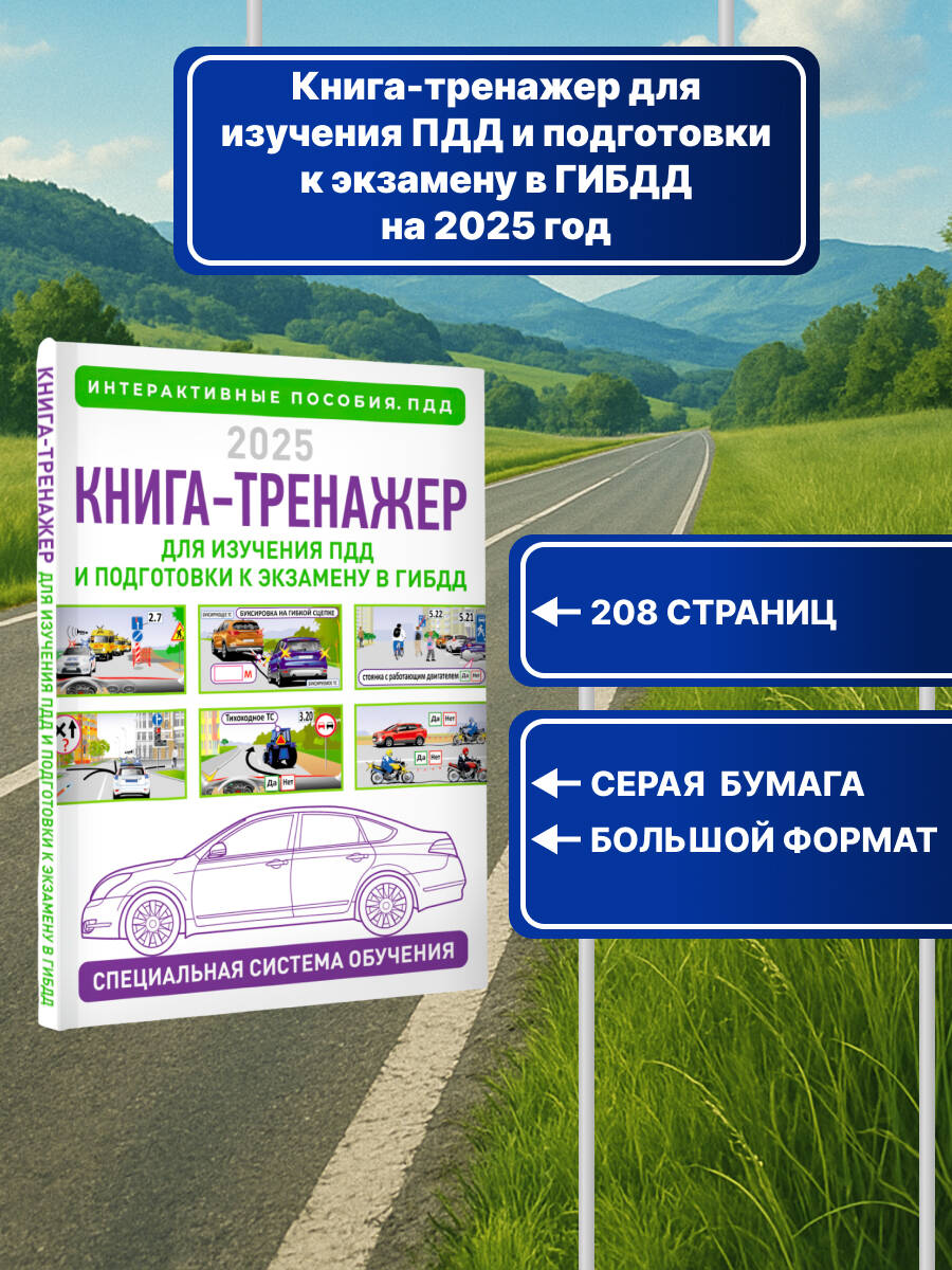 Книга-тренажер для изучения ПДД и подготовки к экзамену в ГИБДД на 2025 год