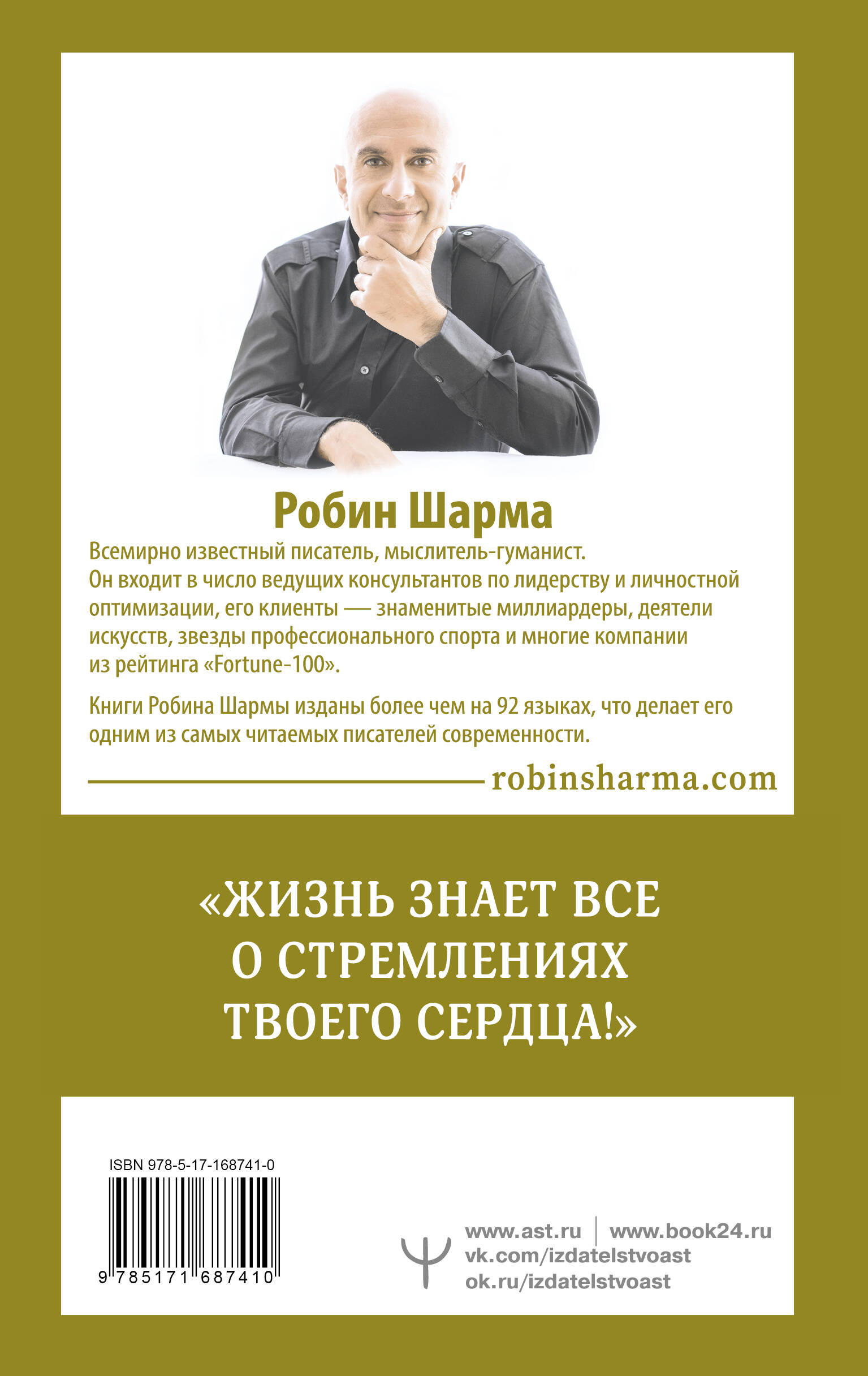 Робин Шарма - всемирно известный писатель, мыслитель-гуманист. Он входит в число ведущих консультантов по лидерству и личностной оптимизации, его клиенты - знаменитые миллиардеры, деятели искусств, звезды профессионального спорта и многие компании из рейтинга "Fortune-100". Перед вами - книга мудрости, источник неисчерпаемого вдохновения! Книга, которая вдохнет в вас новые силы, изменит всю вашу жизнь и поможет обрести себя! Она научит вас преодолевать трудности, разбираться в человеческой натуре, выстраивать гармоничные отношения с близкими. Она расскажет вам, как побеждать и находить сокровища буквально под ногами! Но главное - она научит вас радоваться жизни. Эта книга - для тех, кто потерял путеводную нить и утратил огонь веры. Встречайте: очередной шедевр от мастера жизни! Ровно 365 мудрых мыслей, которые навсегда изменят вашу жизнь к лучшему! Читая ее день за днем, вы будете получать ежедневную "порцию" вдохновения. Эта книга даст вам силы жить, творить и действовать!| Издательство | Издательство "АСТ" |
