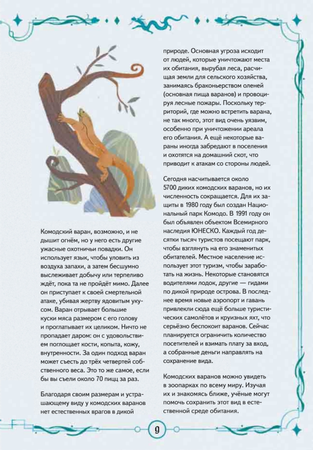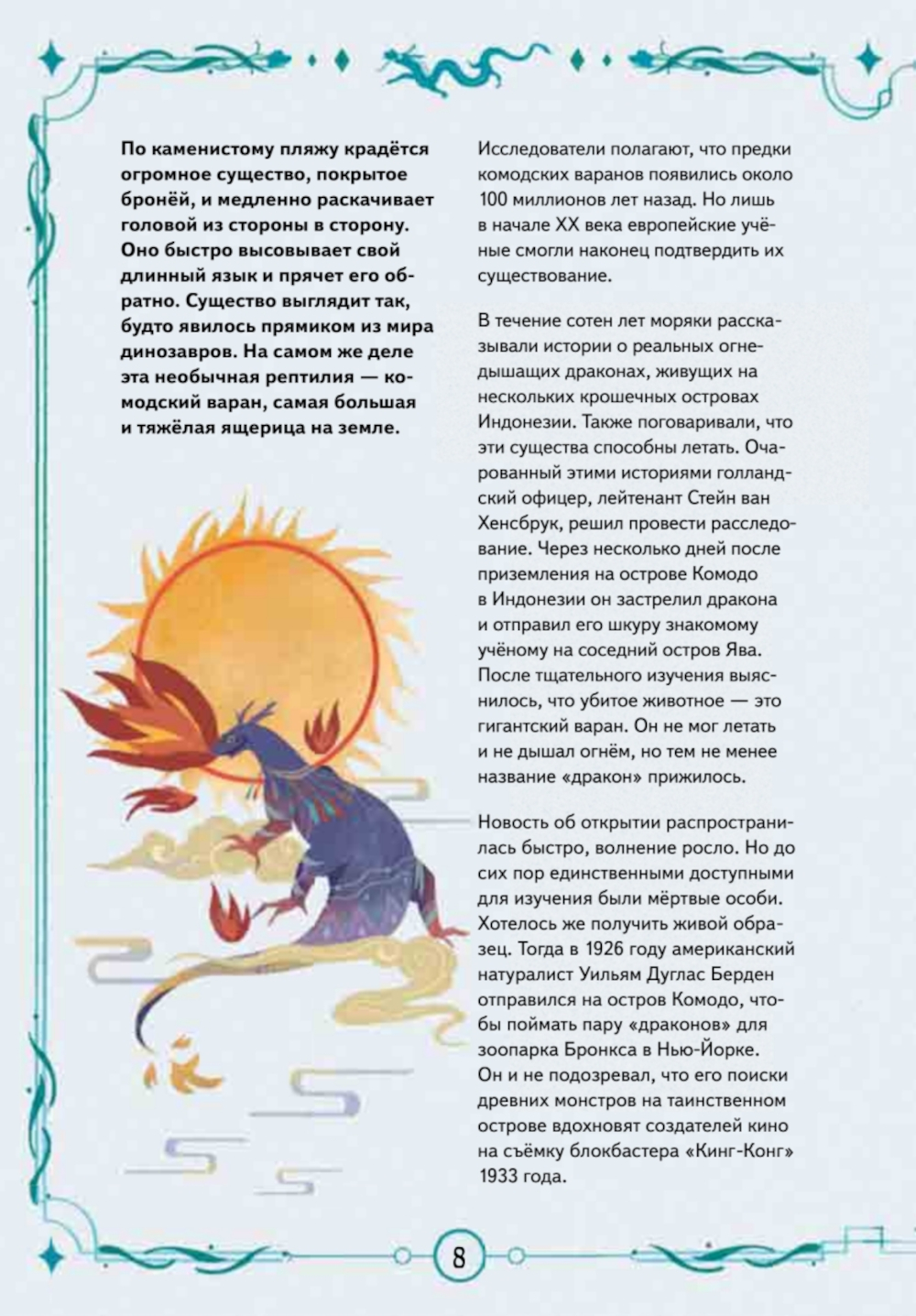 Веками драконы интересовали людей: в сказках они охраняли сокровища и опаляли всё вокруг огнём. Они появлялись во многих мифах и легендах: некоторые парили в воздухе с помощью чешуйчатых крыльев, некоторые прятались в подземельях, а какие-то ныряли в глубины морей и океанов. Хоть мы и не видели огнедышащих драконов, среди нас до сих пор живут драконы! Одни из них летают, другие живут на суше и в воде. Каждый из них расскажет историю, от кого ему досталось драконье имя. В этой книге собраны истории о десяти реальных драконах с увлекательными фактами и мифами. Также ты узнаешь, как были обнаружены эти необычные существа и об их способах выживания в дикой природе. Пришло время отправиться в незабываемое сафари.| Издательство | Питер |