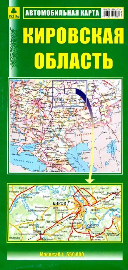 Автомобильная карта Кировской области. Масштаб: 1:650 000.