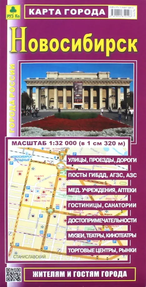 Масштаб 1:32 000 (в 1 см 320 м) - Улицы, проезды, дороги - Посты ГИБДД, АГЗС, АЗС - Медицинские учреждения, аптеки - Гостиницы, санатории - Достопримечательности - Музеи, театры, кинотеатры - Торговые центры, рынки