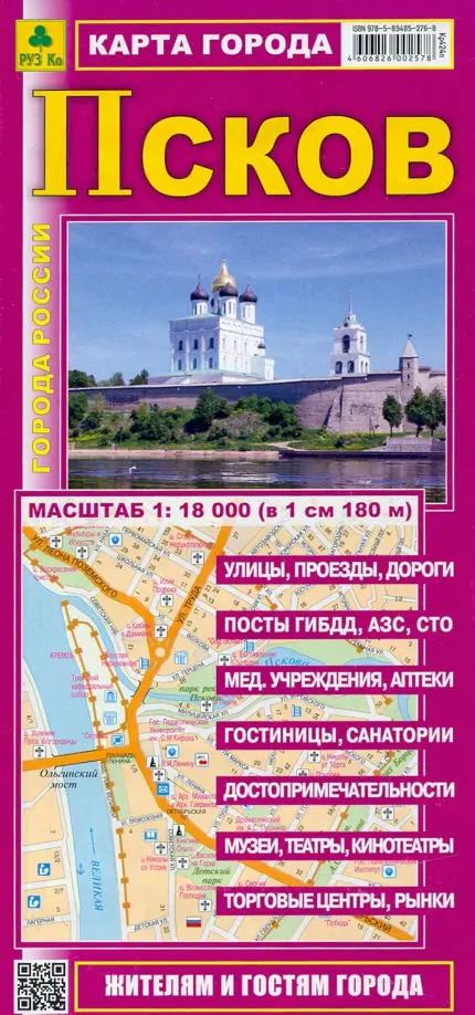 Двусторонняя полноцветная карта. Содержит подробный план города со всеми улицами, номерами угловых домов. Указано расположение административных зданий и социально-культурных объектов Масштаб: 1 : 18 000. Для жителей и гостей города.