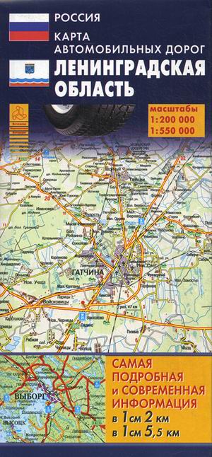 Карта Ленинградской области и прилегающих территорий в двух масштабах 1:200000, 1:550000.<br>Самая подробная и современная информация:<br>• Детальная классификация автодорог.<br>• Российская и европейская нумерация автодорог.<br>• Подробнейший километраж между центрами населенных пунктов и пересечениями дорог.<br>• Полный указатель названий населенных пунктов.<br>• Таблицы расстояний между городами.<br>• Схема важнейших автомобильных дорог Ленинградской области.