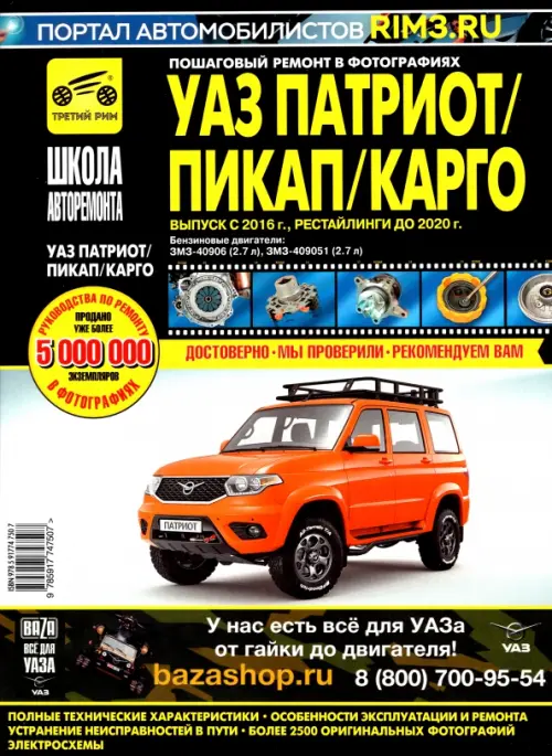 УАЗ Patriot, бенз. двигатель ЗМЗ-40906, ЗМЗ-409051 2016 г. Рестайлинги до 2020 г. ч/б фото рук. по рем. Школа Авторемонта//2016/2020 гг.//