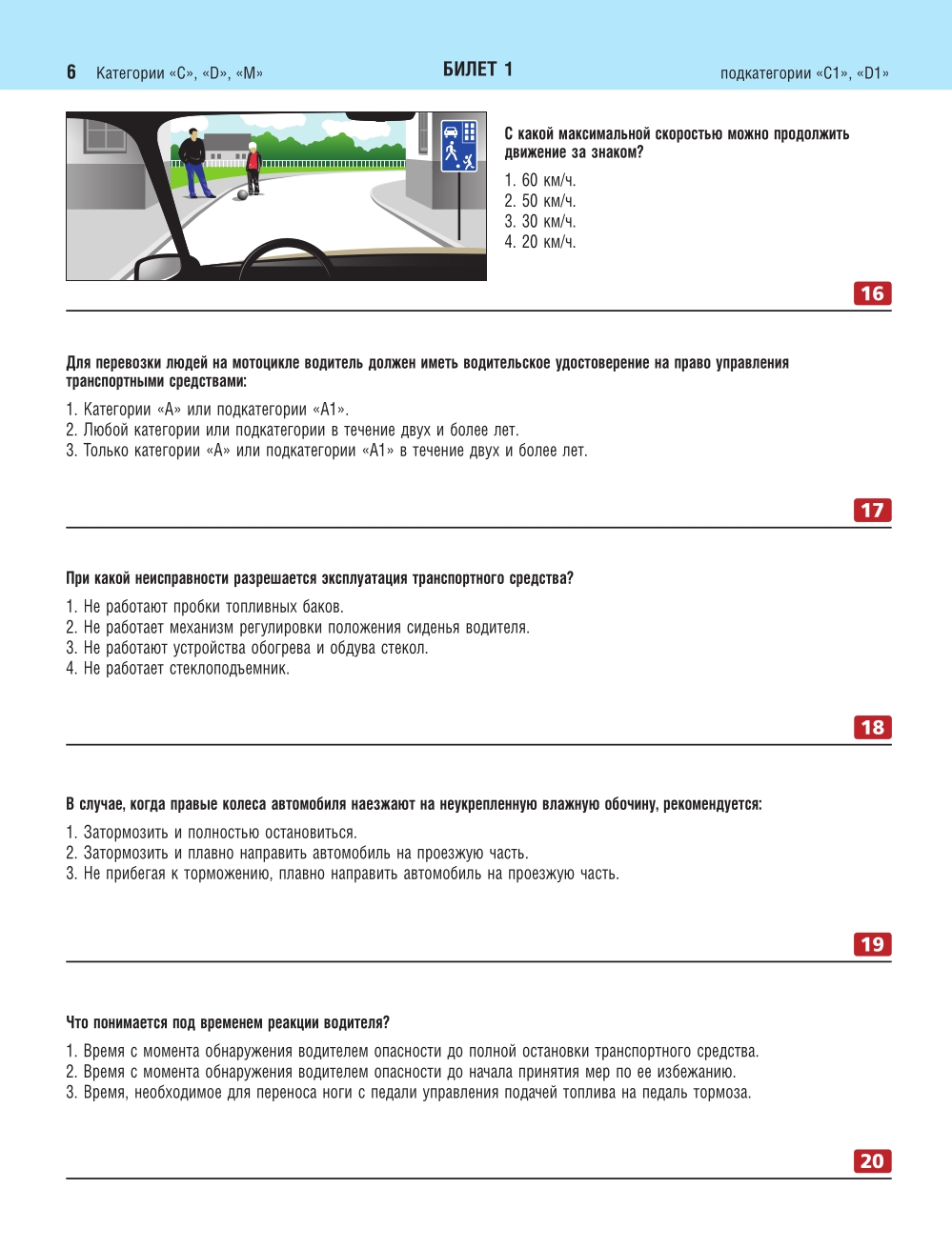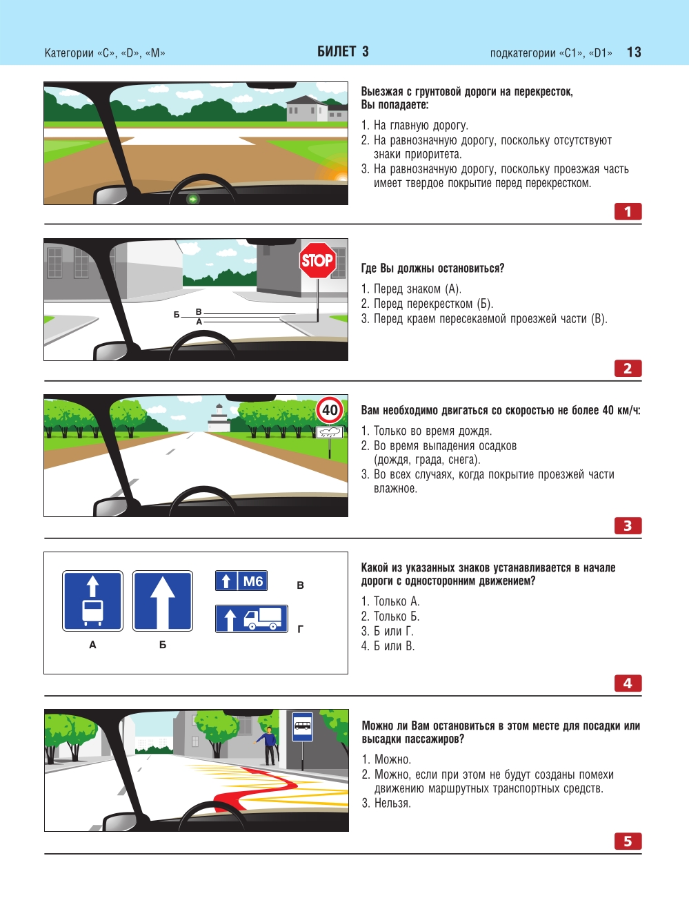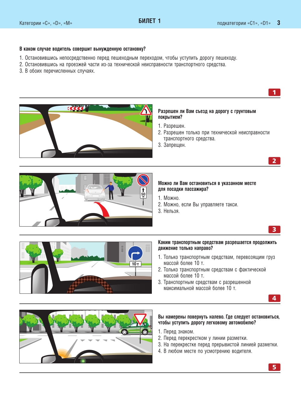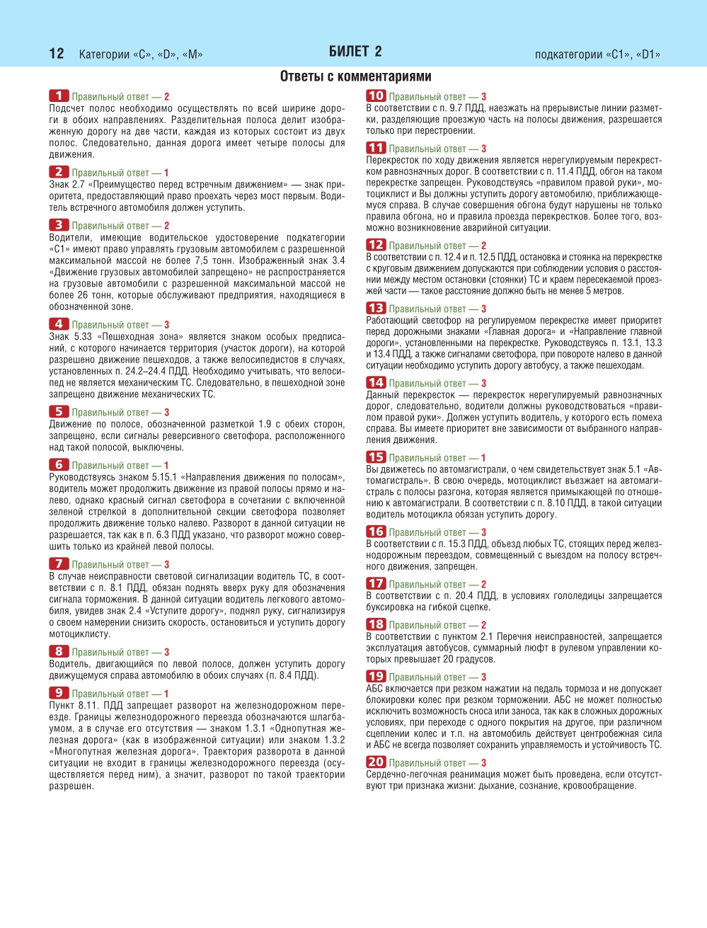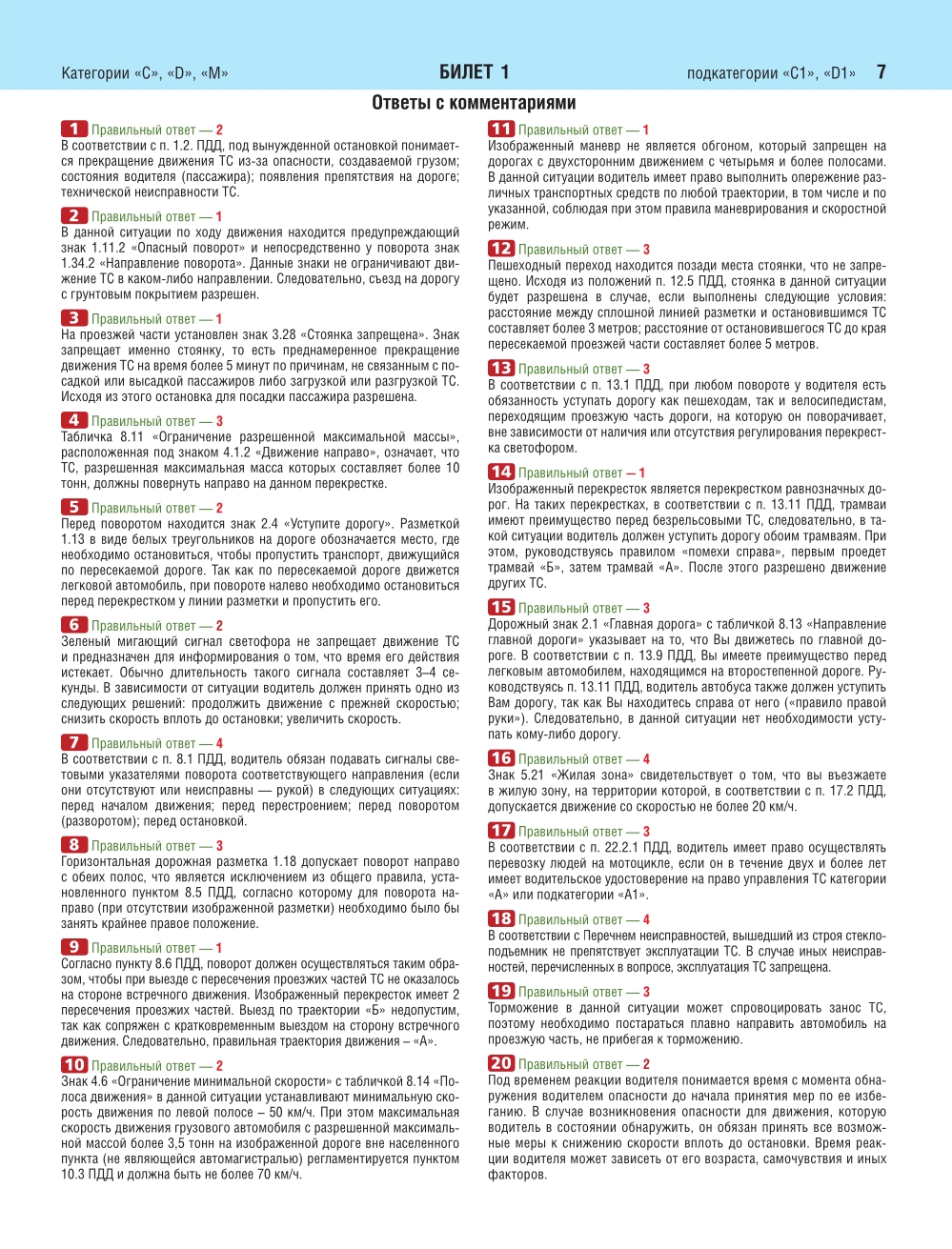 Экзаменационные билеты для сдачи экзаменов на права категорий C и D подкатегорий C1 D1 с комментариями на 2025 год
