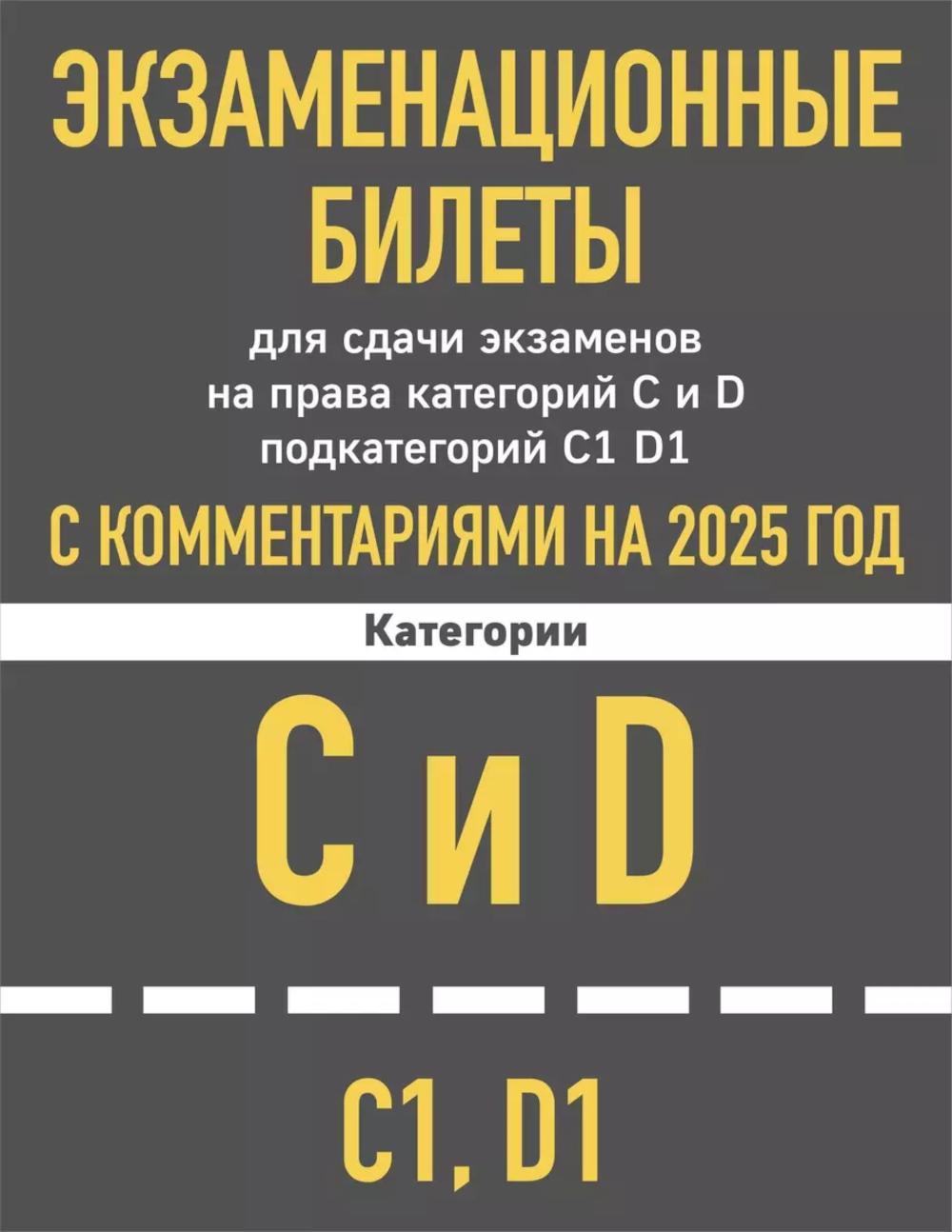 Аннотация: Экзаменационные билеты для сдачи экзаменов на права категорий C и D подкатегорий C1 D1 с комментариями на 2025 год