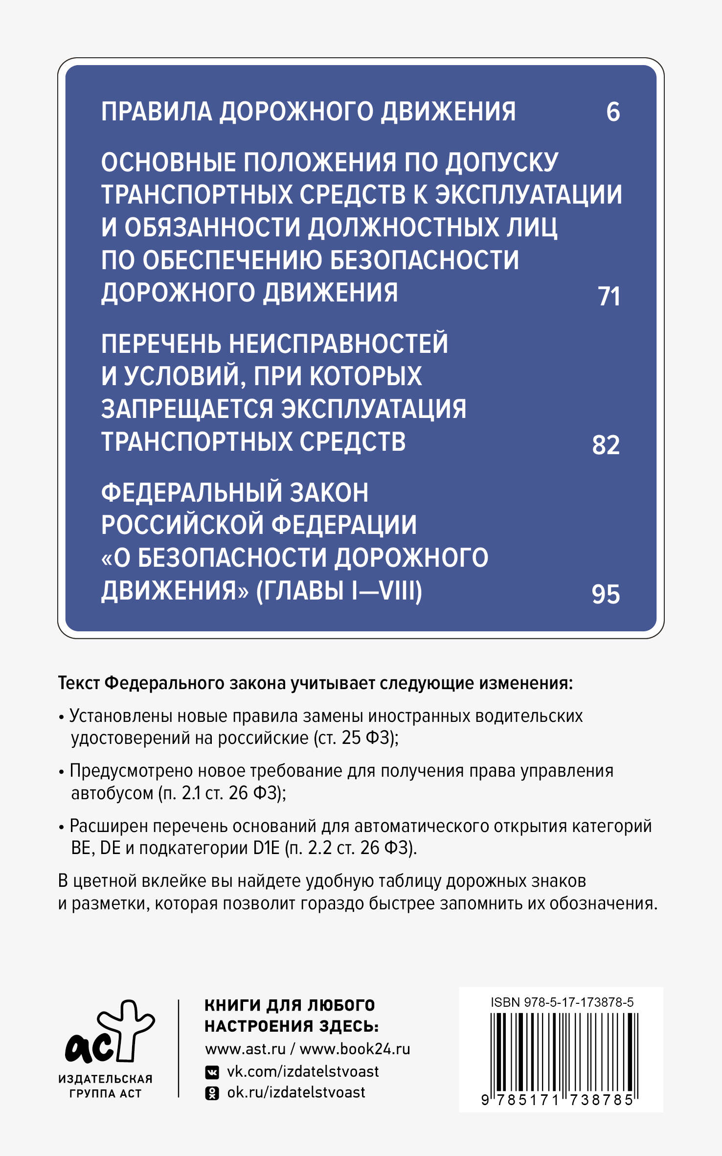 В издании содержится официальный текст Правил дорожного движения и Федерального закона "О безопасности дорожного движения", в которых учтены изменения и дополнения на 1 апреля 2025 года. Книга дополняется цветной вклейкой, содержащей актуальную и удобную таблицу дорожных знаков и разметки, которая позволит быстро запомнить их обозначения. Текст Федерального закона учитывает изменения в части: - условий получения права на управление транспортным средством; - правил замены иностранных водительских удостоверений на российские. Издание рассчитано на кандидатов в водители, водителей, автоюристов и всех интересующихся дорожным движением. В текст книги внесены все изменения и дополнения, опубликованные в официальных источниках на момент подписания в печать.| Издательство | Издательство "АСТ" |