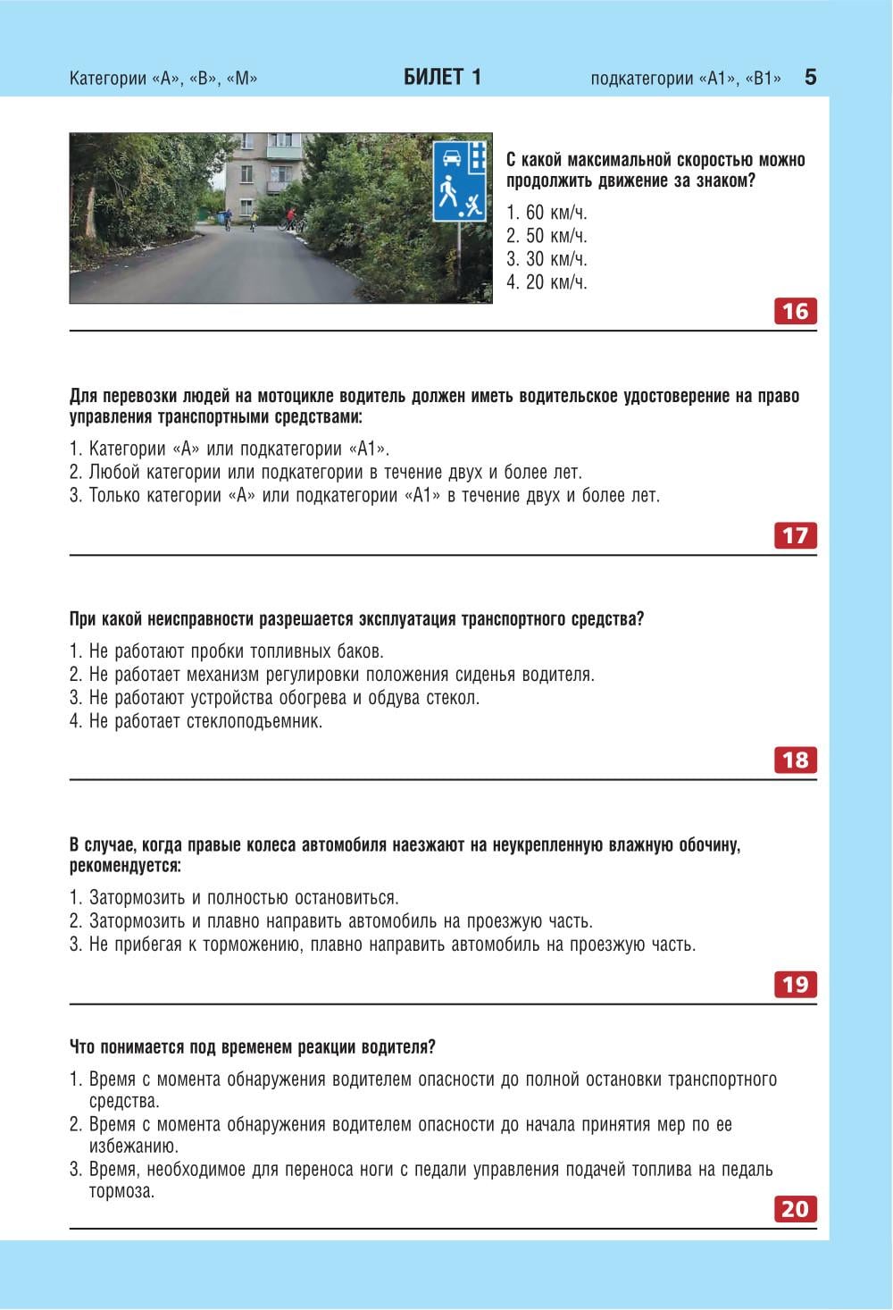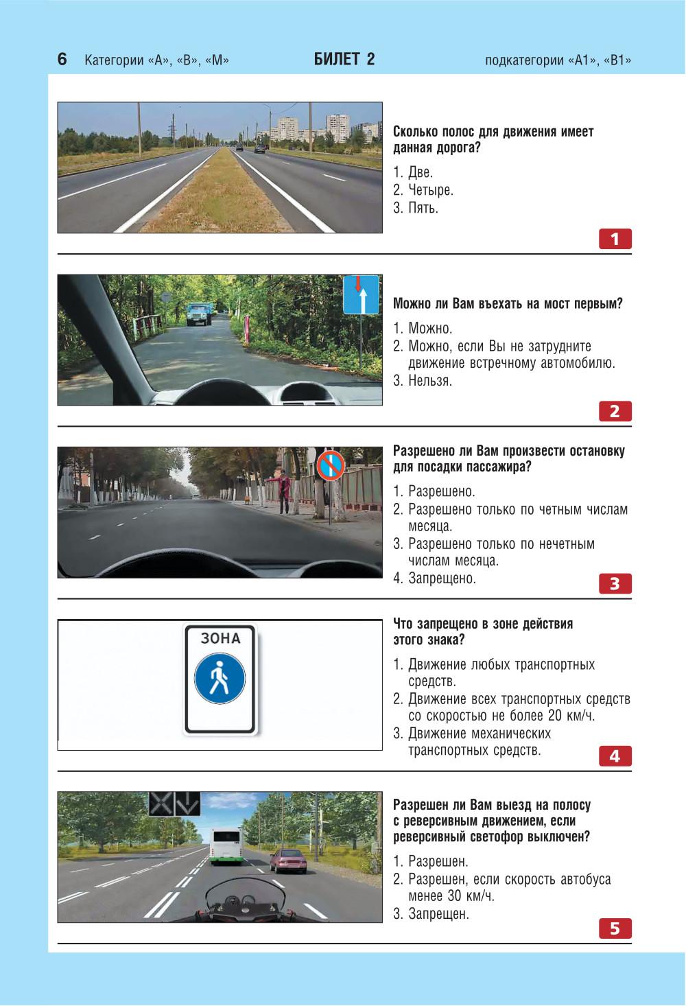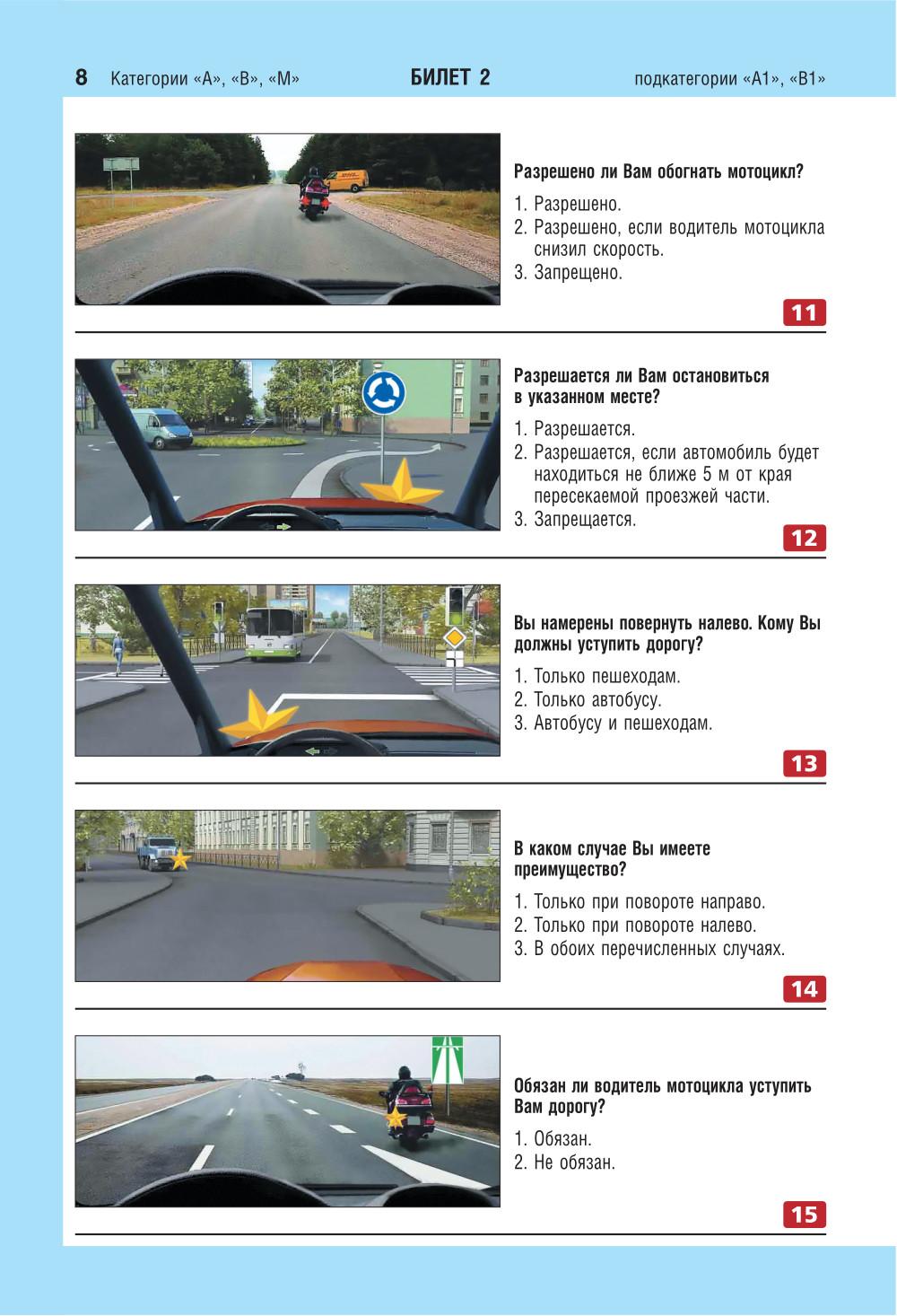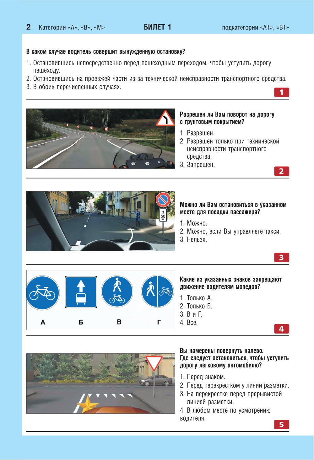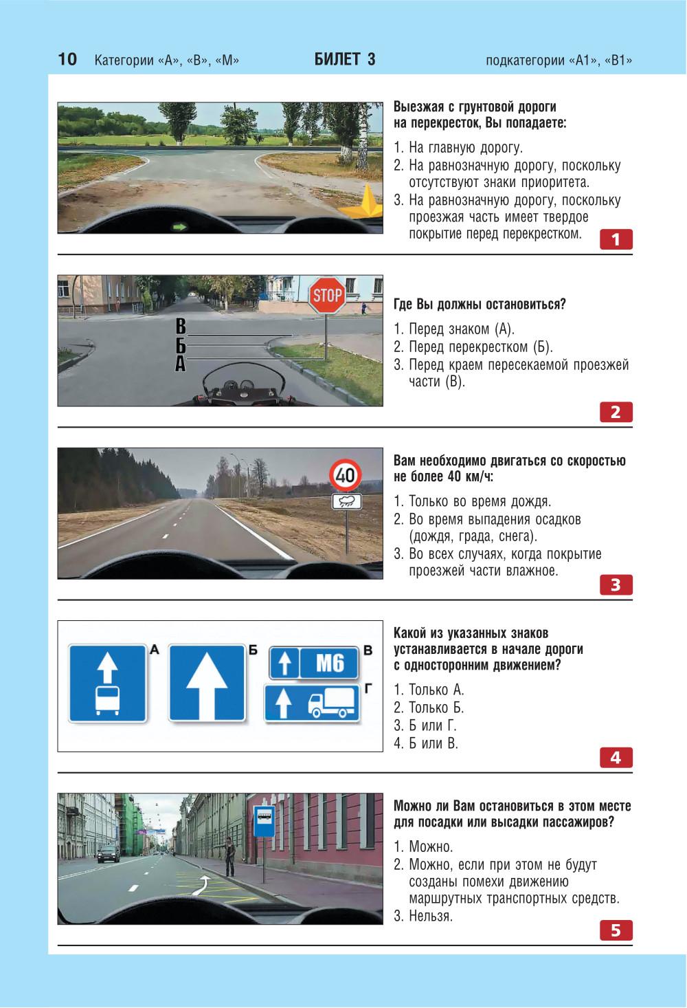 Экзаменационные билеты для сдачи экзаменов на права категорий А, В и M, подкатегорий A1, B1 (с изм. на 2026 год)