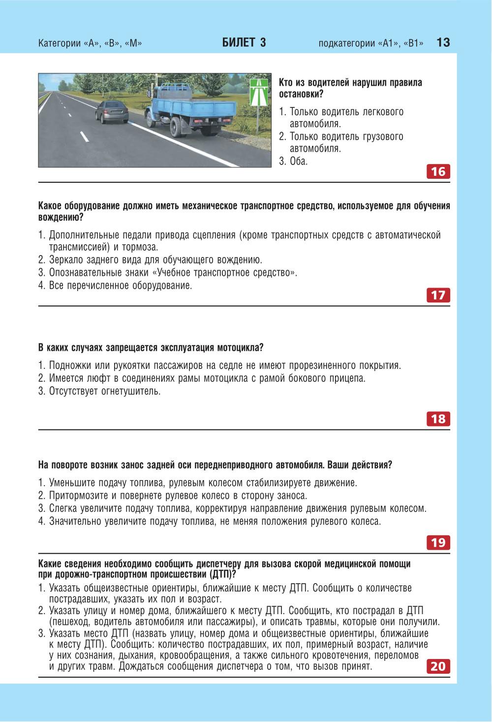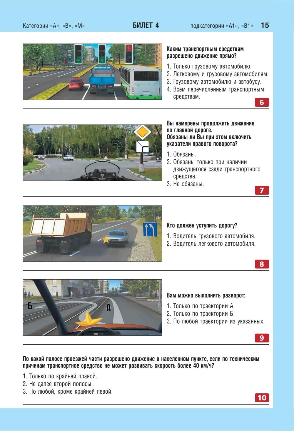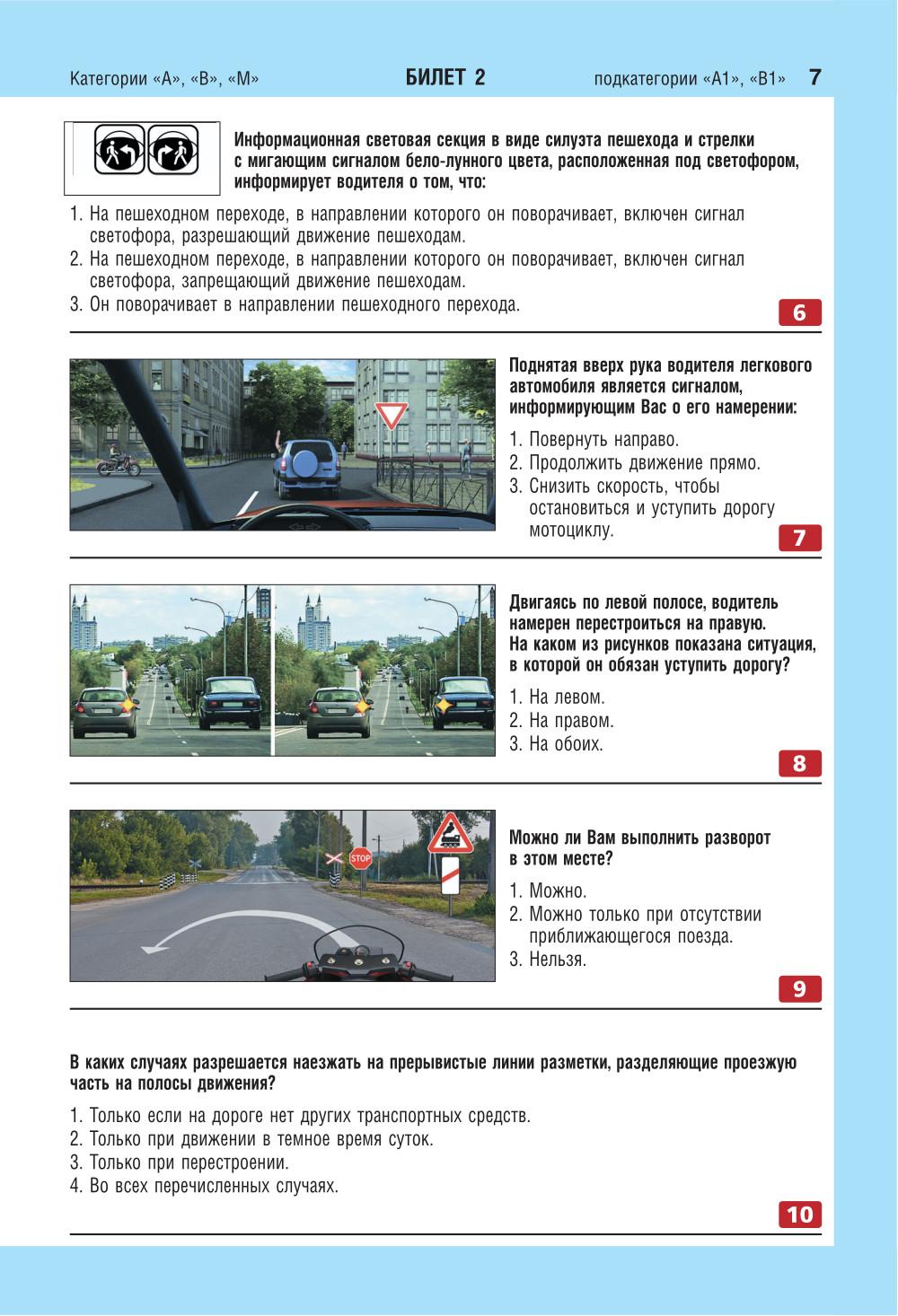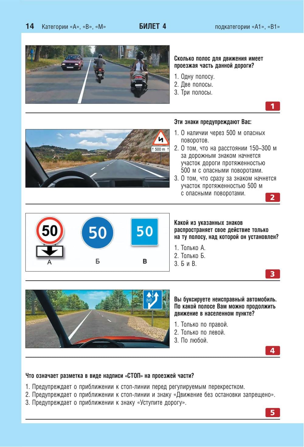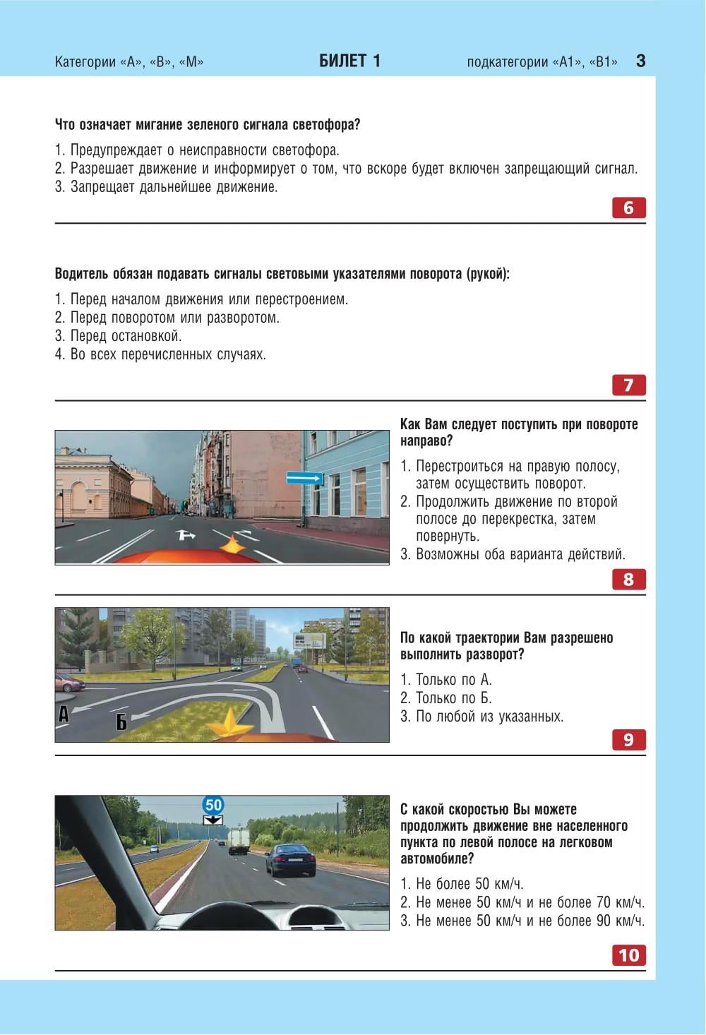 Экзаменационные билеты для сдачи экзаменов на права категорий А, В и M, подкатегорий A1, B1 (с изм. на 2026 год)