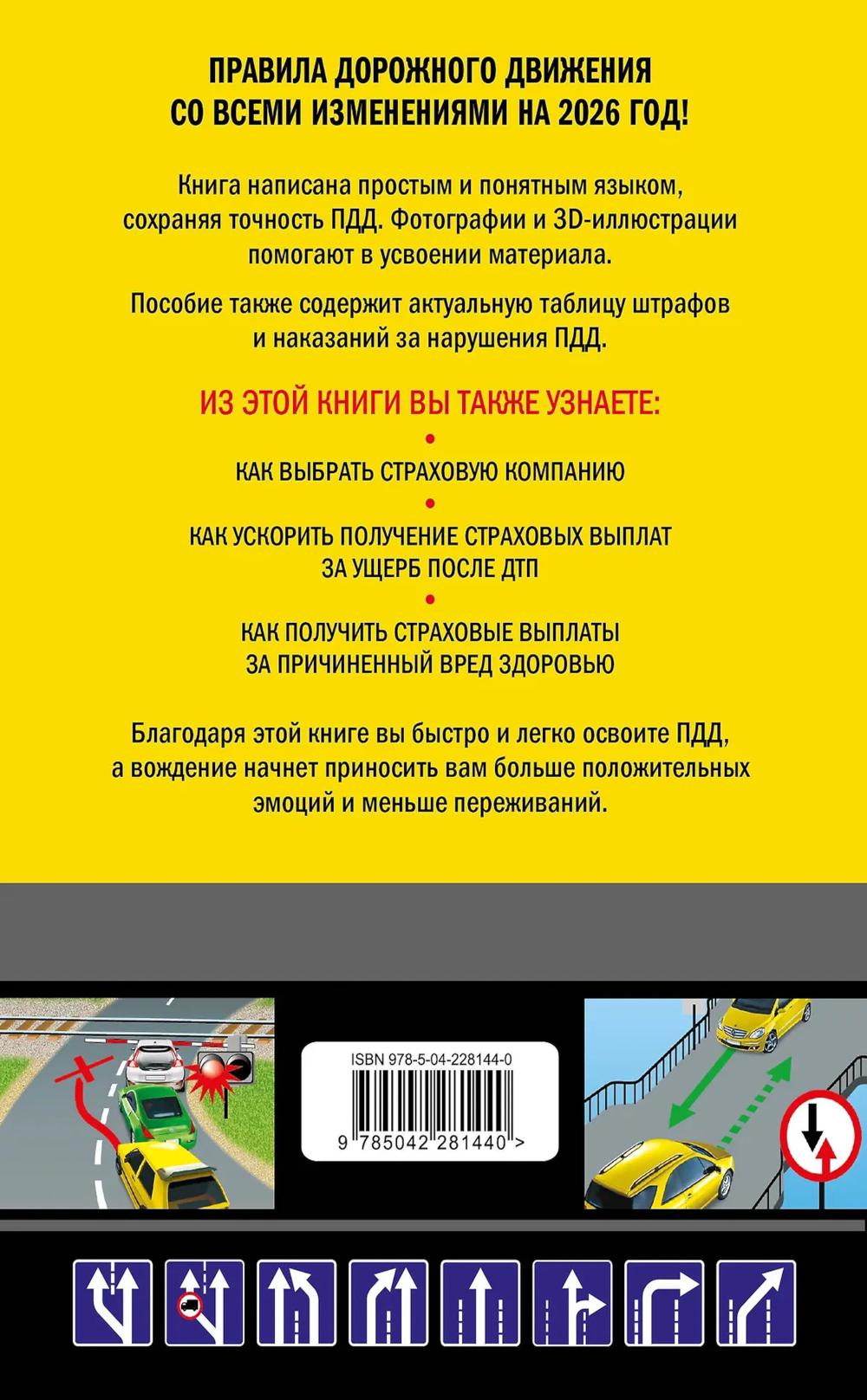 Издание содержит Правила дорожного движения в действующей редакции, со всеми изменениями на 2026 год, в доступном изложении, с примерами, фотографиями и трехмерными изображениями дорожных ситуаций. В книгу также включены таблица действующих штрафов и другая полезная автомобилистам информация, которой нет в ПДД.| Издательство | Эксмо |