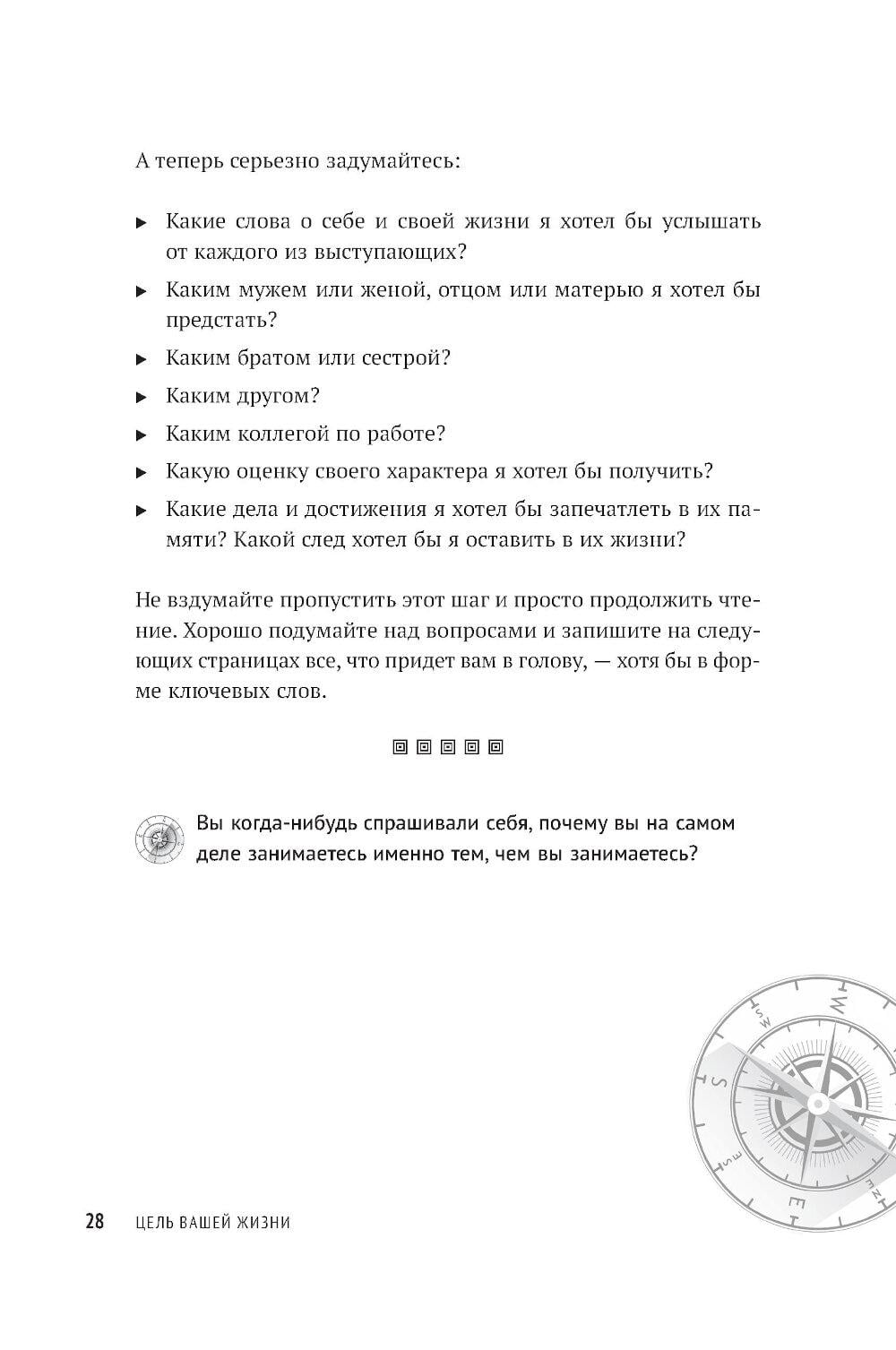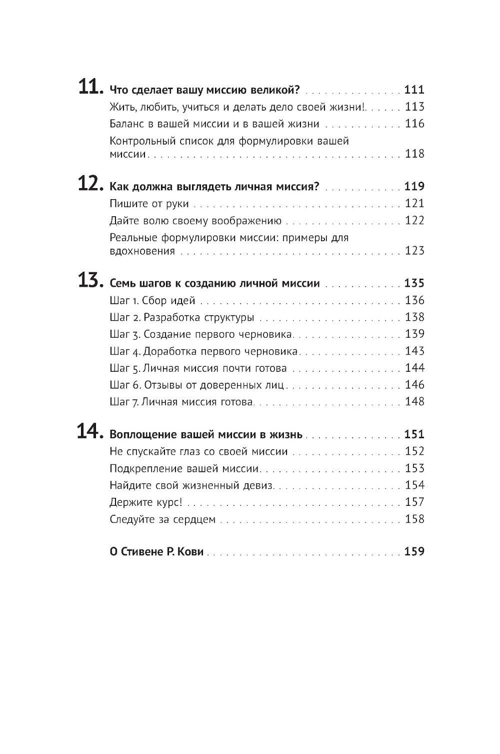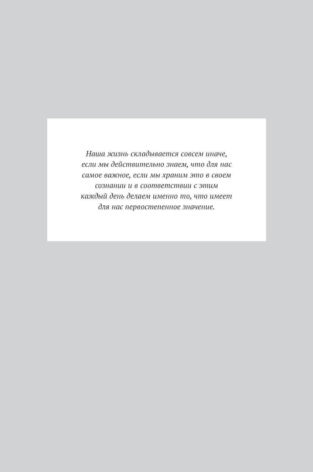 Вы когда-нибудь задавали себе вопрос, чего действительно хотите? Ответив на него, вы станете на путь к личной миссии - вашему предназначению, главной жизненной цели, компасу, который возвращает на выбранный курс, как бы далеко вы ни отклонились. Личная миссия придает уверенности, помогает найти занятие по душе и делает каждый ваш день на земле осмысленным. Это буквально самое главное, с чем должен определиться человек, который не желает отдаваться воле случая, - в этом убежден Стивен Р. Кови, автор «Семи навыков высокоэффективных людей» и других бестселлеров. Он предлагает практическое руководство, которое поможет определить ваше мировоззрение, раскрыть свой потенциал и сформулировать личную миссию - именно вашу, а не чью-то еще.