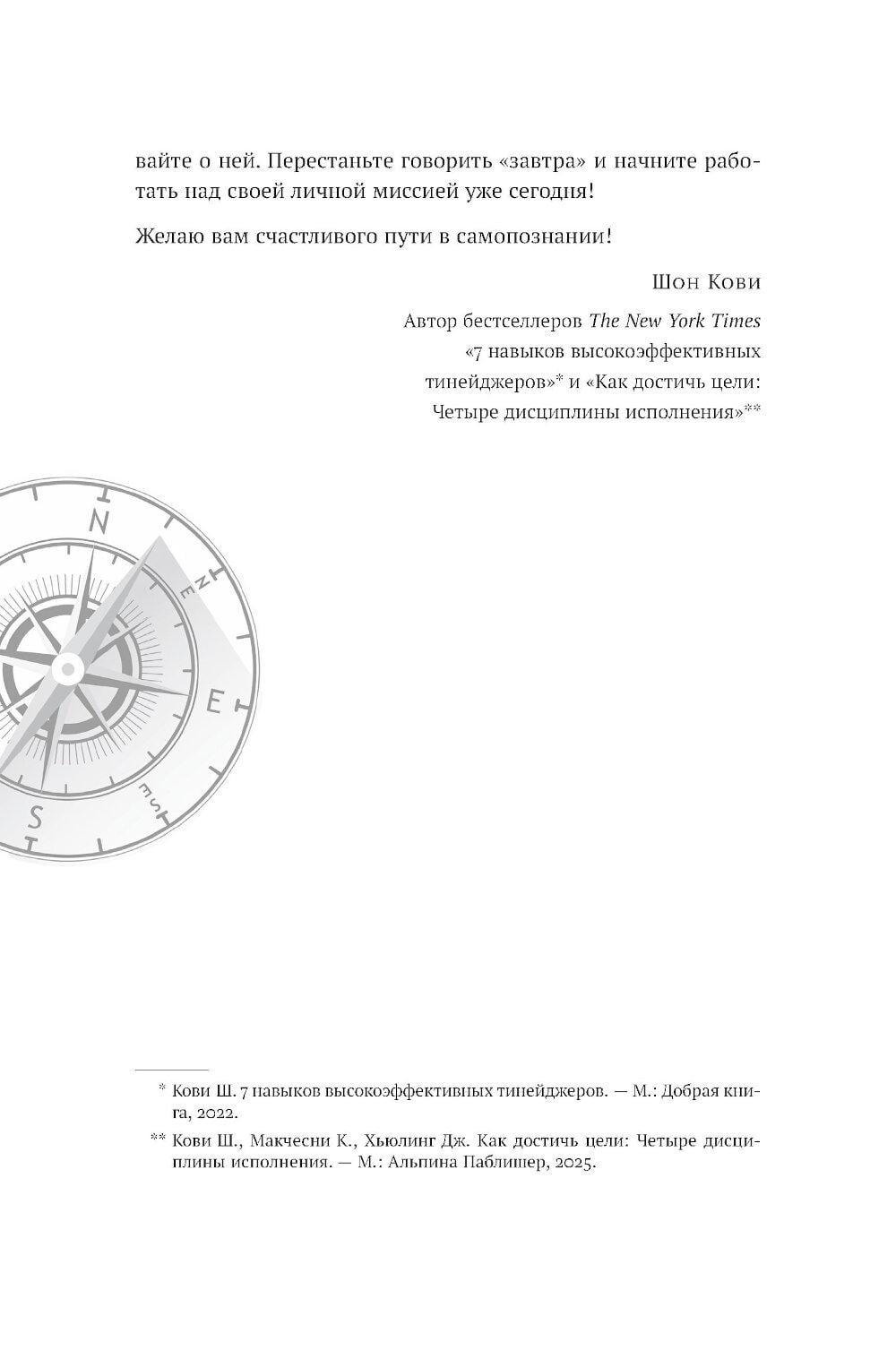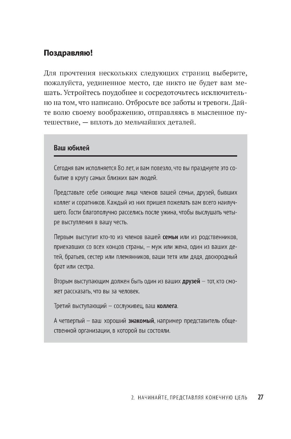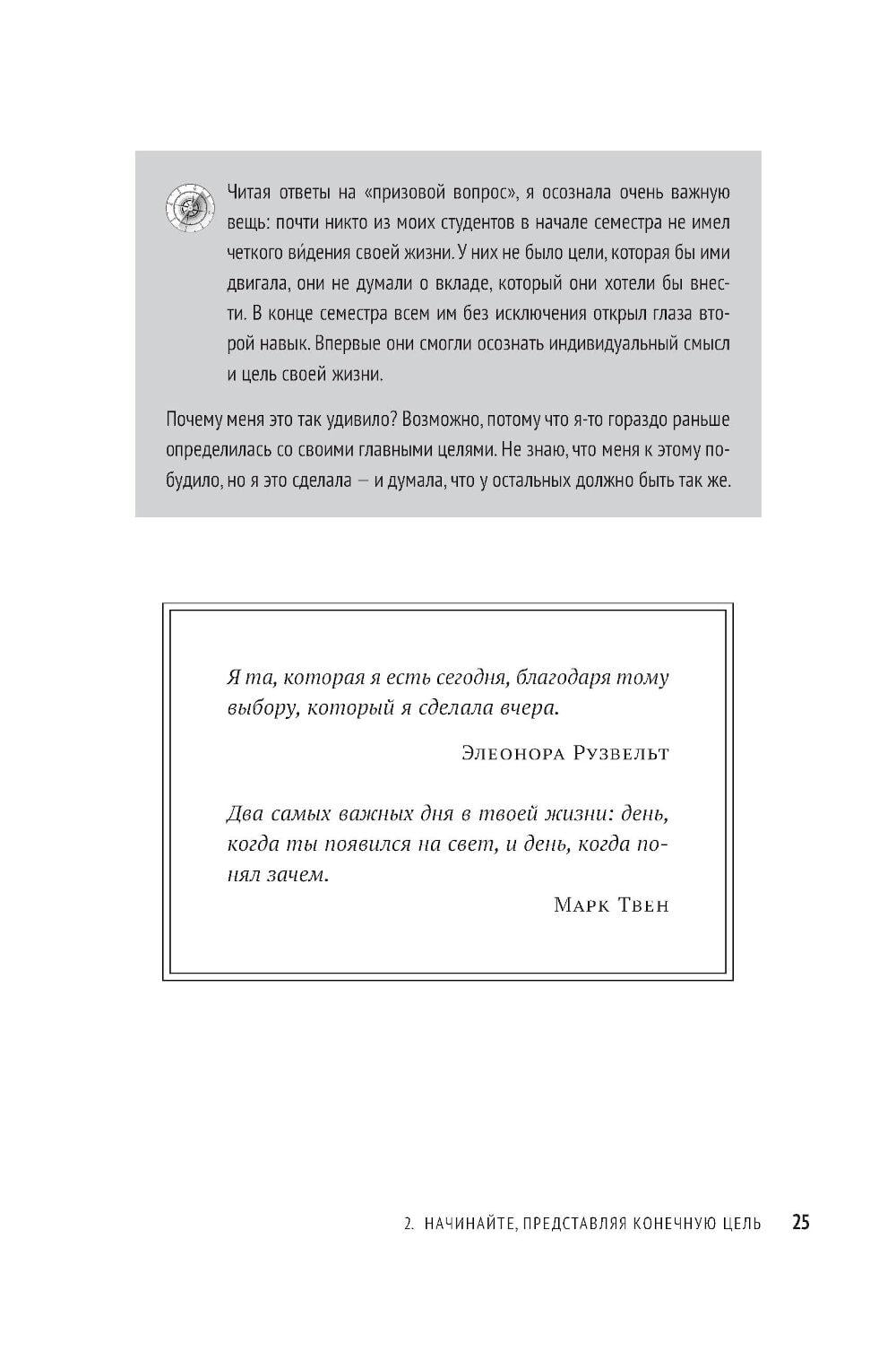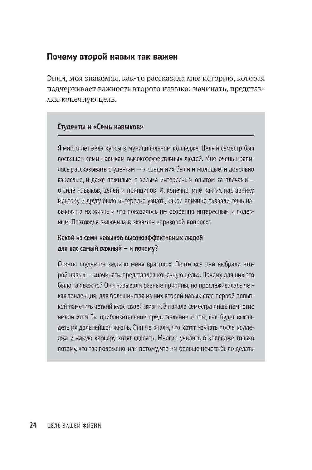 Вы когда-нибудь задавали себе вопрос, чего действительно хотите? Ответив на него, вы станете на путь к личной миссии - вашему предназначению, главной жизненной цели, компасу, который возвращает на выбранный курс, как бы далеко вы ни отклонились. Личная миссия придает уверенности, помогает найти занятие по душе и делает каждый ваш день на земле осмысленным. Это буквально самое главное, с чем должен определиться человек, который не желает отдаваться воле случая, - в этом убежден Стивен Р. Кови, автор «Семи навыков высокоэффективных людей» и других бестселлеров. Он предлагает практическое руководство, которое поможет определить ваше мировоззрение, раскрыть свой потенциал и сформулировать личную миссию - именно вашу, а не чью-то еще.