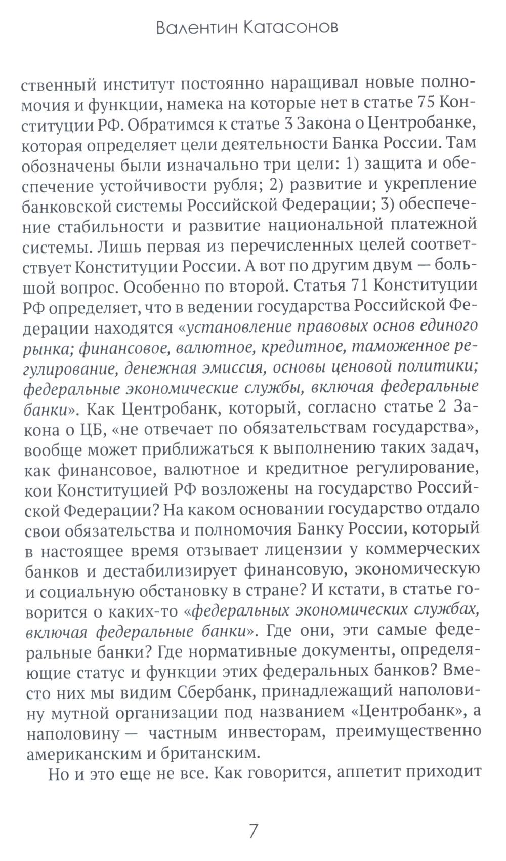 Центральные банки на службе «хозяев денег» Том III. Центробанк РФ сегодня (с 2018 года до наших дней). Катасонов В. Ю. Знаете ли вы, какие функции выполняет Центробанк России? А о том, кто в нашей стране создает инфляцию? Или кто помог Западу украсть валютные резервы России? Официальные власти все чаще говорят о введении цифрового рубля. А нужен ли он нам? Сейчас особенно остро встает еще один вопрос: нужна ли России национализация международных резервов? Не перечесть всех вопросов, на которые внимательный читатель найдет ответы в данной книге. Третий том трехтомника профессора В. Ю. Катасонова посвящен Центробанку России в период с 2018 по 2023 год: его структуре, функциям, целям работы, международным связям и контактам, юридическим казусам и т. д. Автор поднимает многие злободневные вопросы, например об убытках Центробанка, о золотовалютном параличе, о токсичных активах, о таргетировании инфляции. Причины болезненных явлений в экономике нельзя замалчивать, их следует искать, изучать и обсуждать, ведь для излечения болезни (в том числе экономической) требуется познать ее природу. Сообщить о неточности| Издательство | Тион |