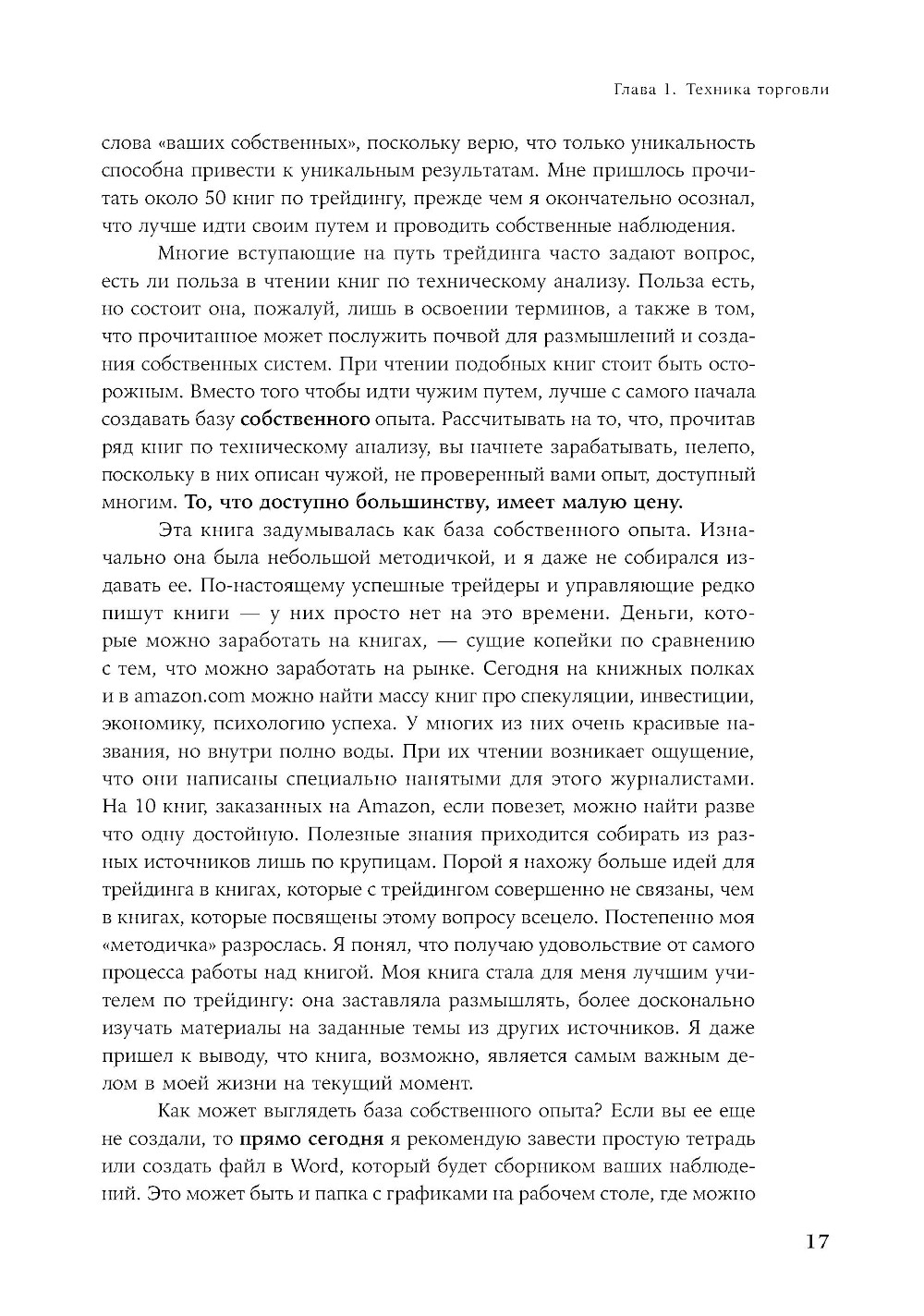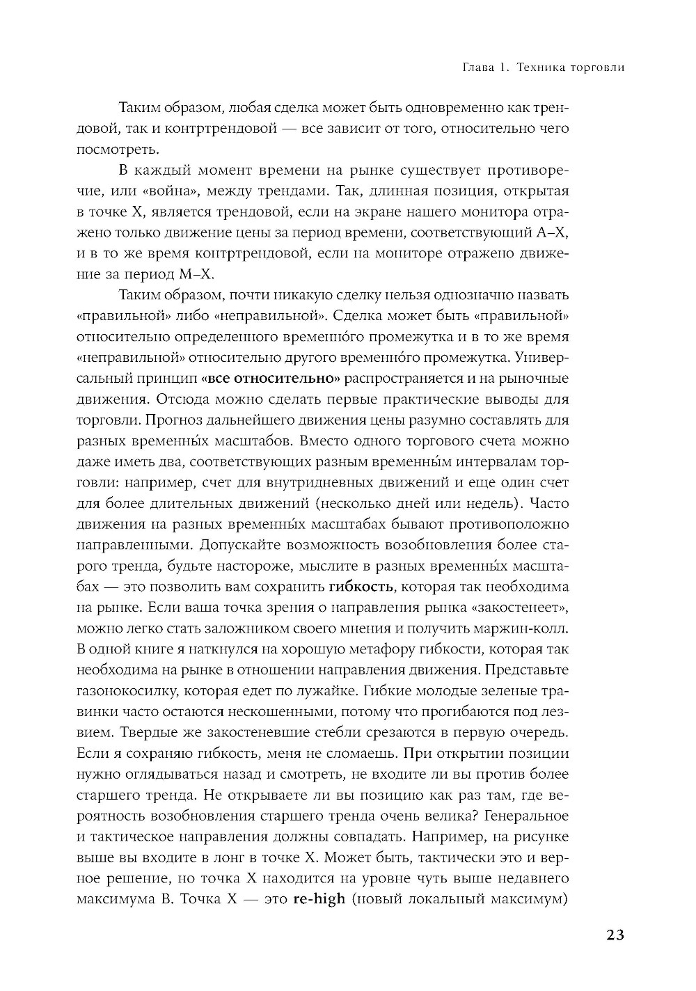 Книга посвящена позиционному трейдингу и ориентирована на трейдеров с опытом практической работы не менее года. Акцент сделан на методах управления капиталом и психологии трейдинга, так как именно эти составляющие определяют долгосрочный успех. Автор книги Ренат Валеев имеет более чем 10-летний опыт работы на финансовых рынках, из которых пять лет был трейдером в Центральном банке РФ, где входил в команду, отвечающую за управление валютными резервами. В 26 лет он стал самым крупным по объему операций валютным трейдером в стране. Материал книги в основном базируется на примерах с валютного рынка, но по сути является универсальным. Рекомендации, приведенные здесь, применимы и к рынку Forex, и к рынку акций, и к фьючерсам, и к сырью, и к рынку криптовалют.| Издательство | Альпина Паблишер |